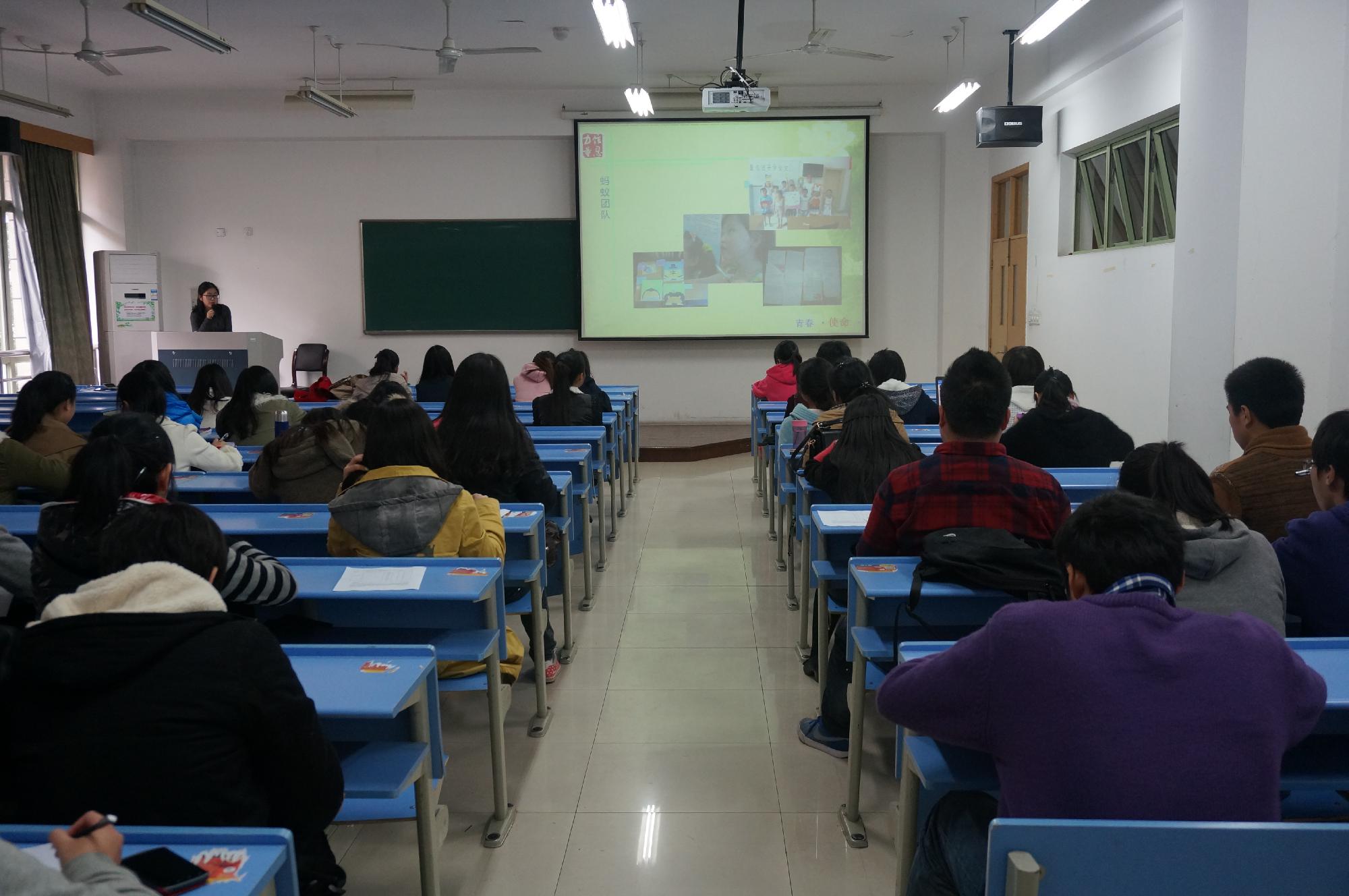 随后是在偏远的村庄,学姐与我们分享了关于村里一对调皮的双胞胎的趣事,接着又详细地介绍了每天支教内容和欢快玩耍照片背后的那些不为人知的心酸,以及顶着水土不服和耳鸣的身体彻夜备课的经历。或许条件艰辛,但是感恩的孩子们回报了她们的付出。最后一天离开村里时,孩子们表演《江南style》和《感恩的心》手语版让在场的志愿者们感受到了他们的可爱之处。