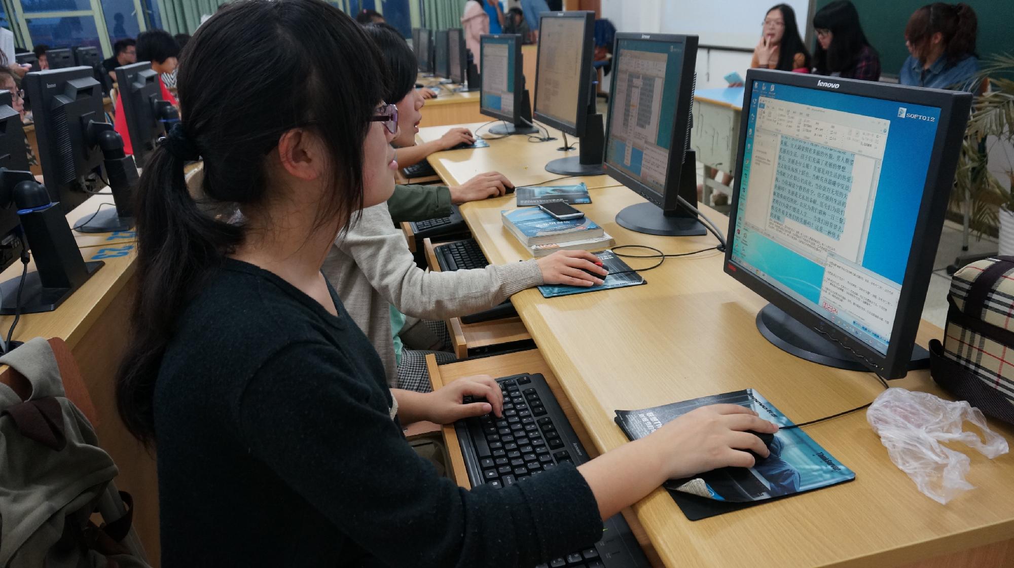 比赛即将开始,参赛选手已经做好充足准备,都跃跃欲试只为在此次比赛中展露手脚。随着主持人的一声令下,大家很快进入考试客户端开始比赛,一次次键盘和鼠标的敲击声回荡在整个教室。参赛选手进入考试客户端答题,主办方综合考虑答题时间和答题正确率,决出优胜者。
