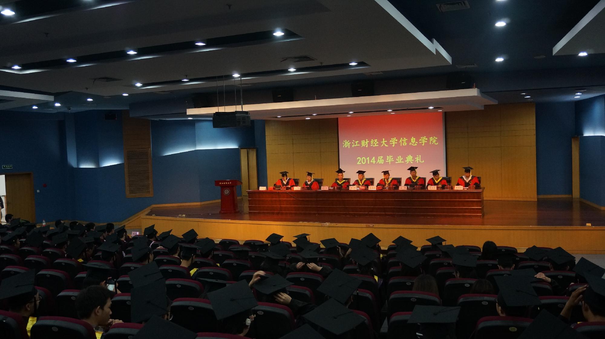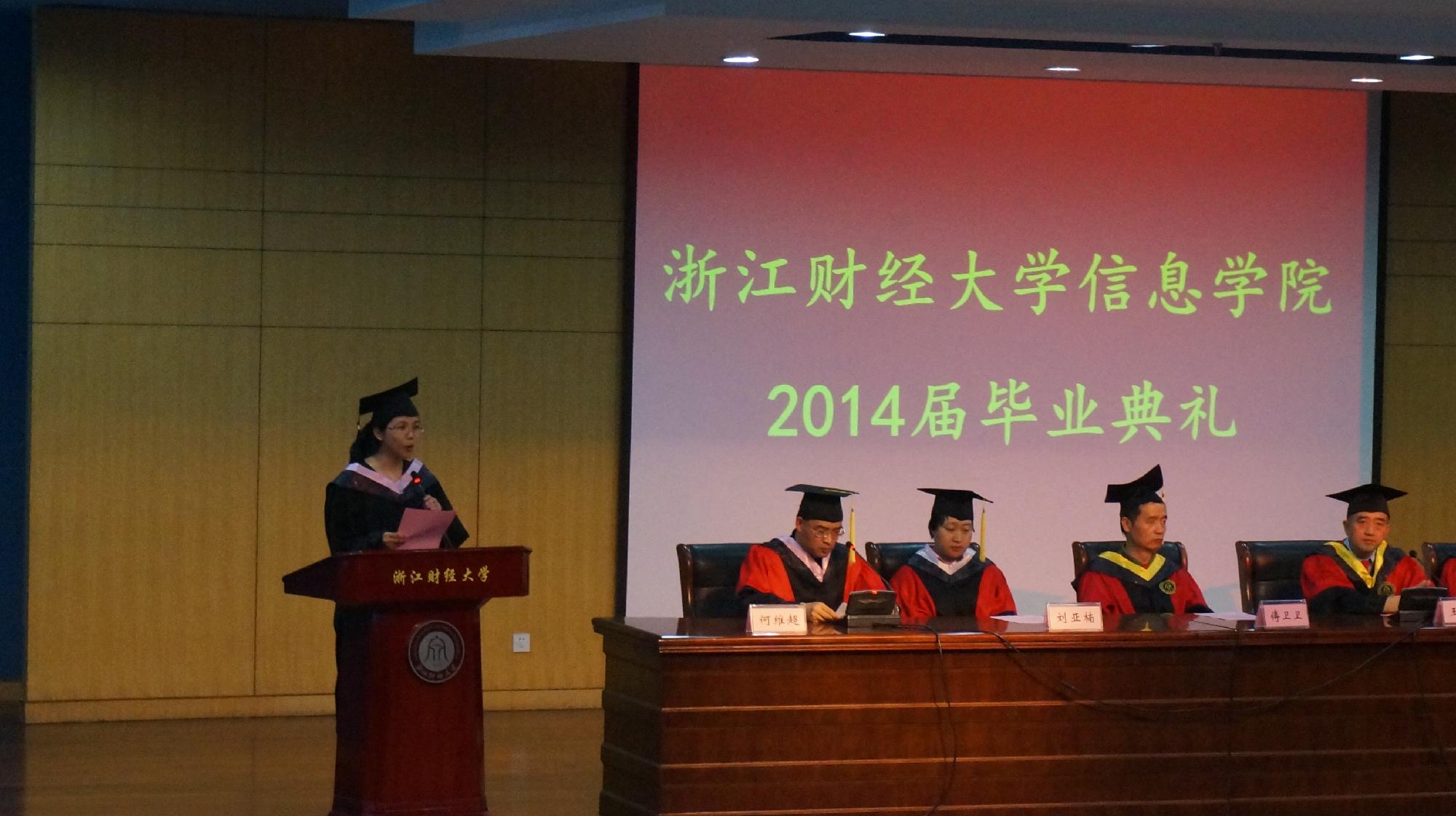 2014年6月17日星期二下午2点,浙江财经大学信息学院2014届毕业典礼在学术中心第一报告厅隆重举行。学院领导和300多名毕业生参加,整个场面隆重而庄严。