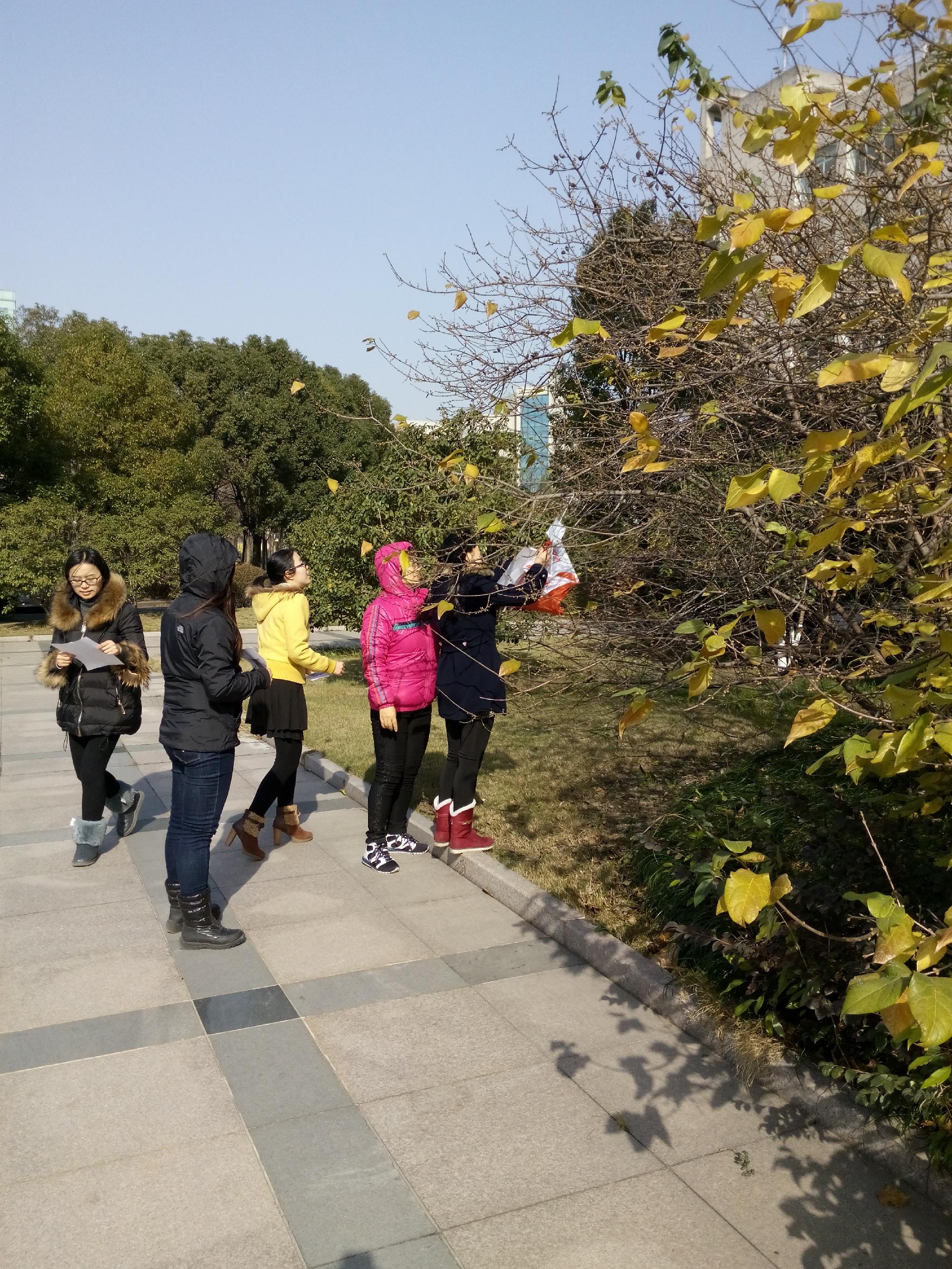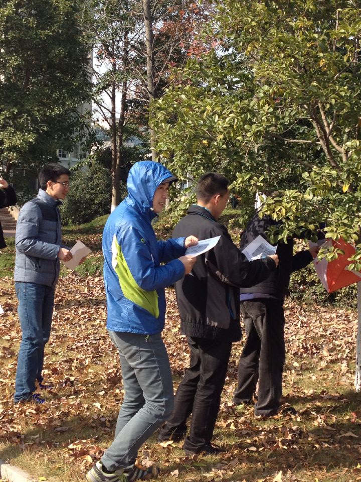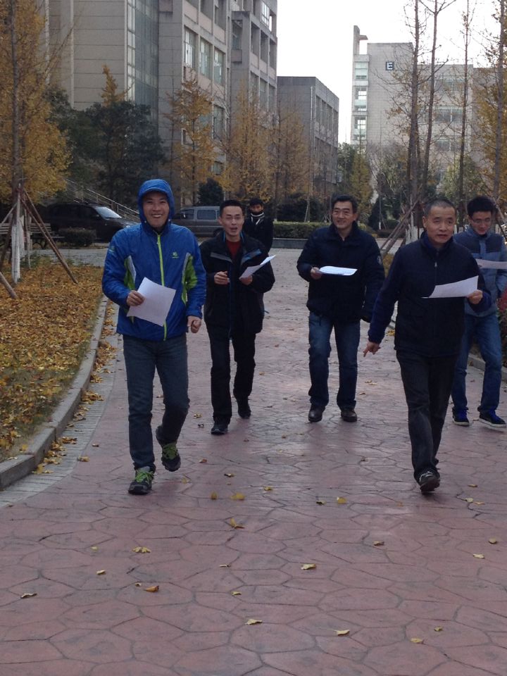 在凛烈的寒风中,信息学院2014年教工“最优路径求解”趣味定向运动赛在我校校园东区拉开帷幕,50名教师参加了此次活动。整个赛程绕东区一周,沿途共设置了15个打卡点,预计全程需用时40分钟。中午12:30分,虽然室外寒风刺骨,但这丝毫不影响信息学院老师们的参赛热情,他们踢踢腿、扭扭腰,做好了充分的赛前准备。在一楼大厅的起点处老师们填写好个人信息,领取地图,辨识目标位置,规划最优路径,就向目标进军了,边跑边仔细寻找设在校内各处的目标点,找到目标打卡,再向下一个目标,确定路线继续出发,在自己寻找的同时,还不忘与路上相遇的同事打个招呼,提醒其他参赛者,让对方少走弯路。