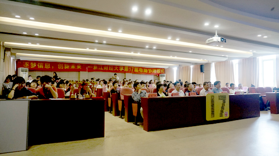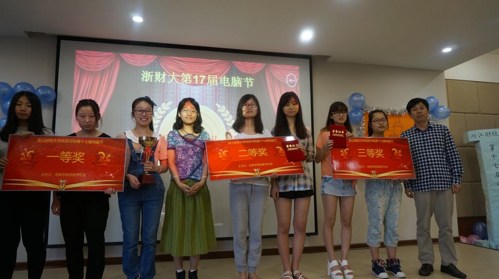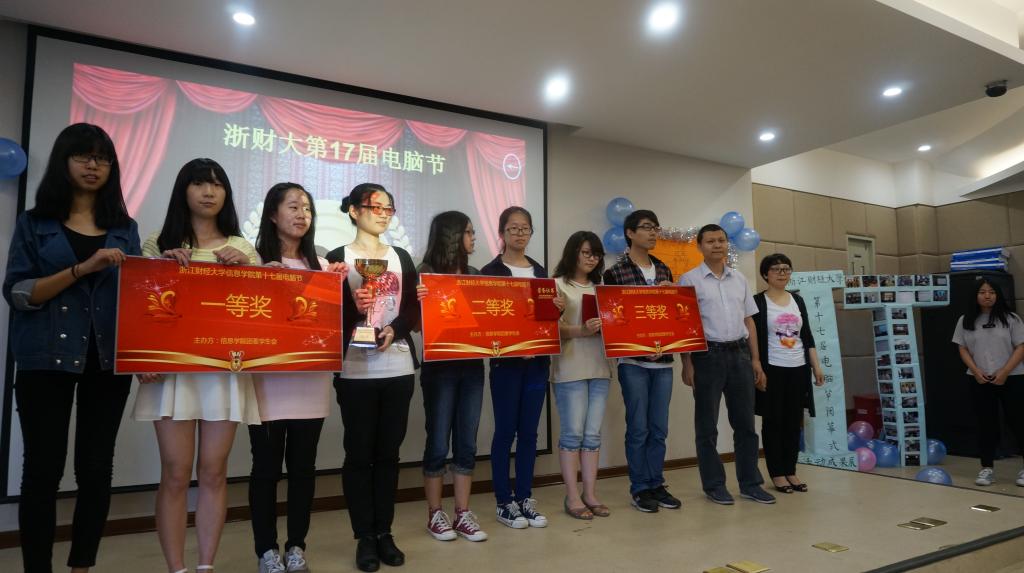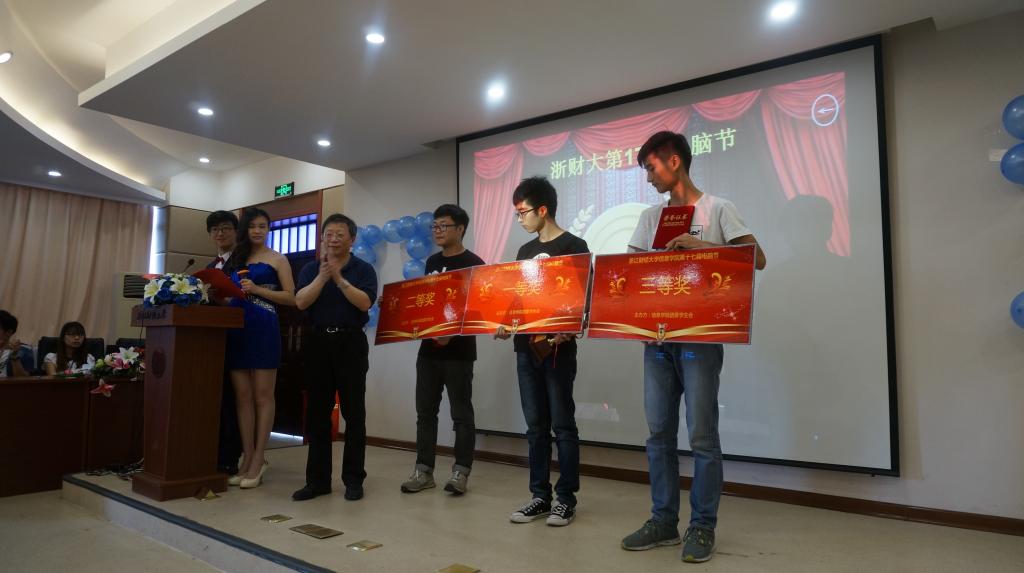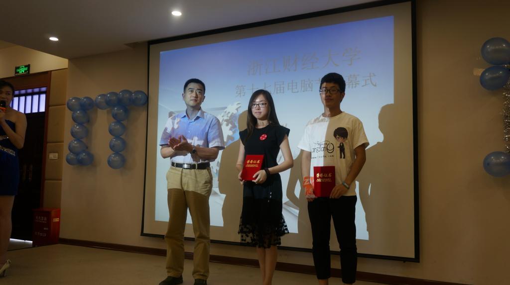 近日,浙江财经大学第十七届电脑节闭幕式在信息学院楼9302室隆重举行,校党委副书记钟晓敏,校团委副书记张淼以及信息学院领导张文宇、王衍、马雪英、张帅等出席闭幕式。闭幕式分为演出、颁奖、以及采访三个环节。由信息学子精心设计制作的VCR拉开了闭幕式的序幕,回顾了本届电脑节期间系列特色活动。