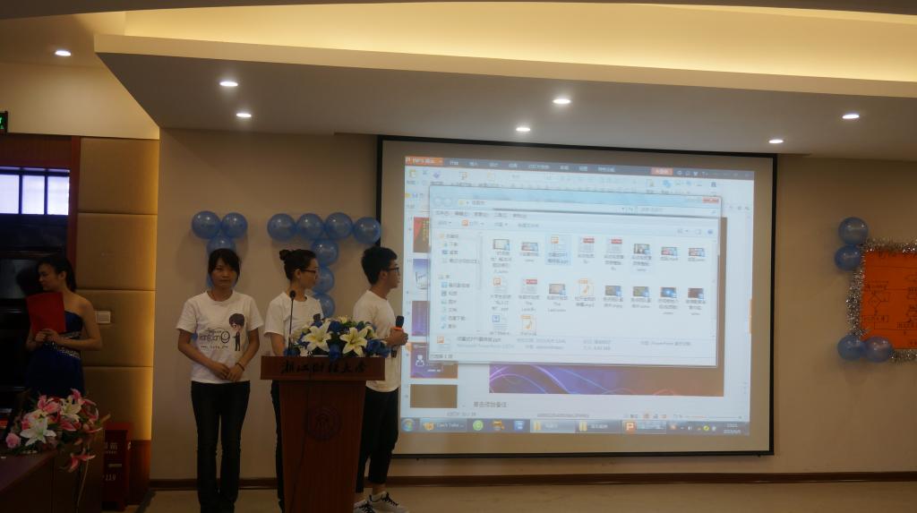 首先由配音大赛一等奖获得者现场配音《冰雪奇缘》。灵动的声音切实还原了电影人物,带动了现场的气氛。紧接着对本届电脑节系列活动中获得奖项的同学进行现场表彰。随后是优秀成果现场展示,分别有浙江省第十四届“挑战杯”中取得优异成绩的亮点团队和聚信息团队以及“其乐”校园团队主创吴姚迪学长进行分享。活动的最后以一段优秀选手采访视频作为本届电脑节的一个圆满结点。