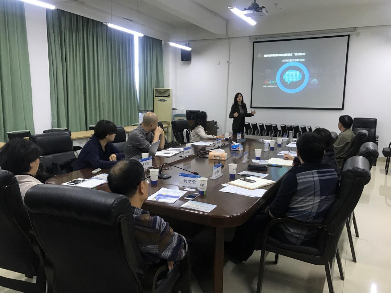 座谈会上,徐千倩副总裁首先介绍了杭州城市大数据运营公司的总体情况。杭州城市大数据运营公司以服务政府决策、城市治理、产业升级、民生需求和创业创新为导向,整合利用政府的数据资源,以大数据、人工智能驱动城市治理的数据运营公司,是一家定位准确、特色鲜明、发展迅猛的“独角兽”企业。著名的“萧山城市大脑”、“最多跑一次”均有该公司的深度参与。