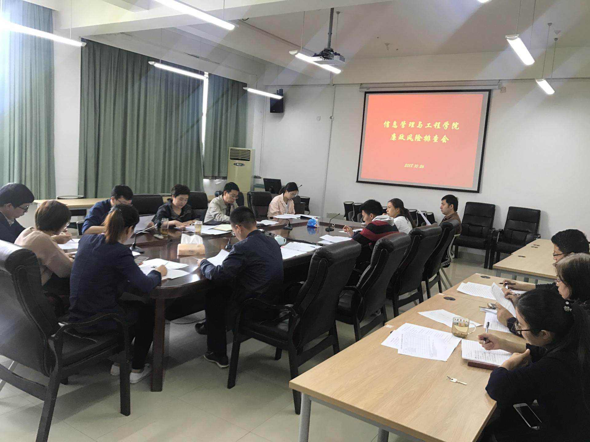 召开廉政风险排查工作布置会,学院党委书记冯睿老师、党委副书记陆颋浩老师及各办公室(中心)全体成员参加了此次会议。
