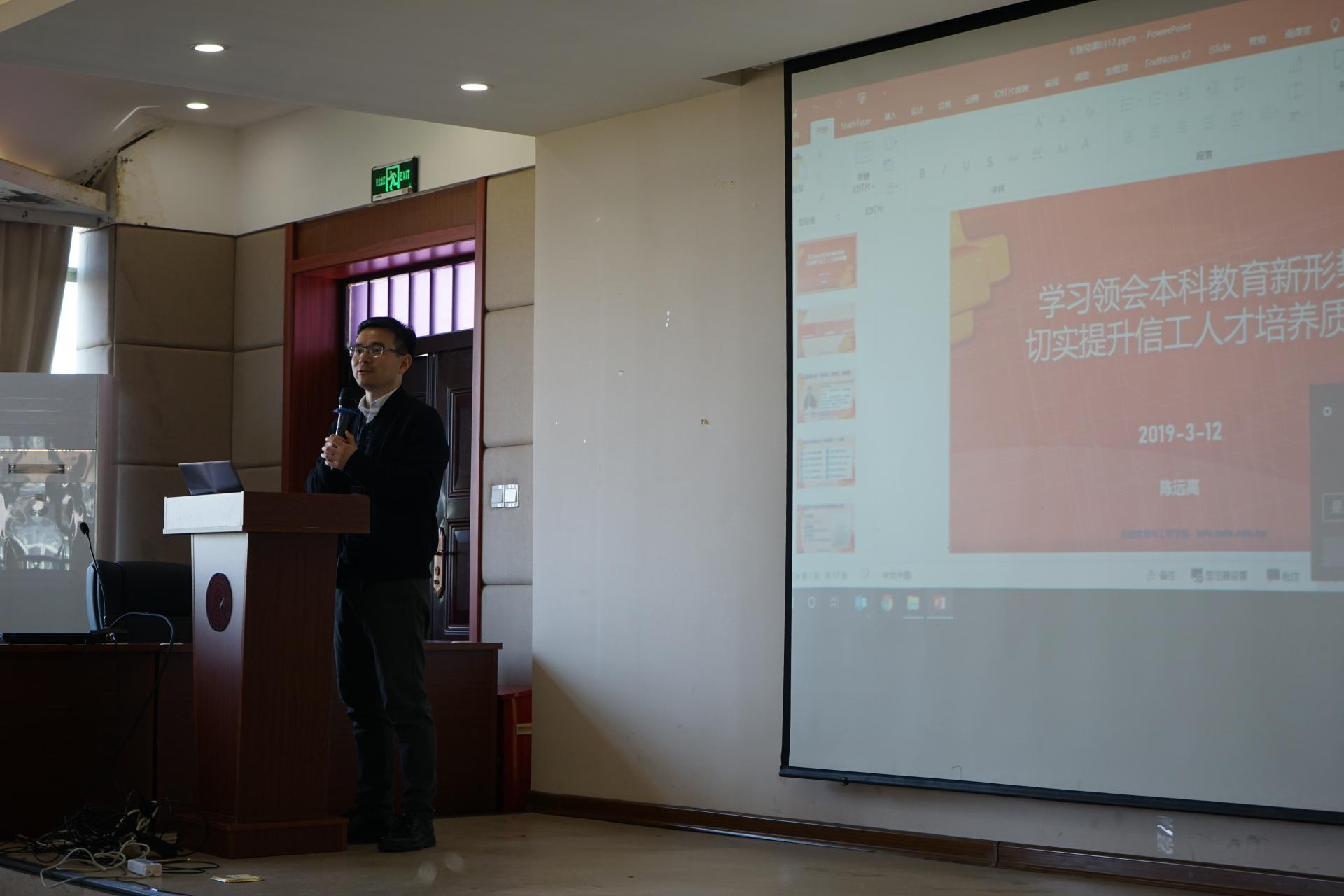 3月12日下午,信工学院副院长陈远高老师给学院全体教职工做了以“学习领会本科教育新形势,切实提升信工人才培养质量”为主题的党课。