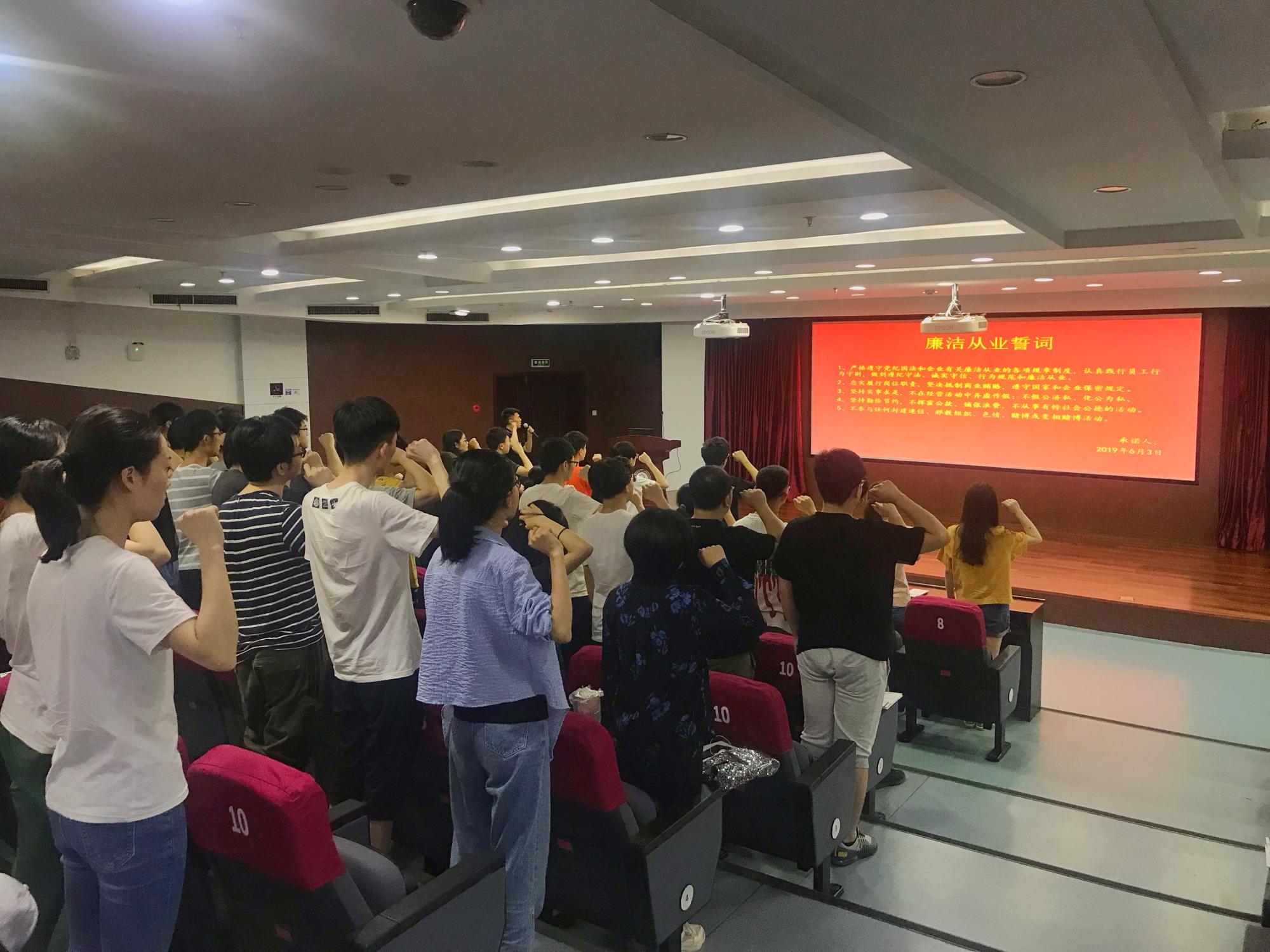 会议最后,在冯李哲老师的带领下全体毕业生进行廉洁从业宣誓。