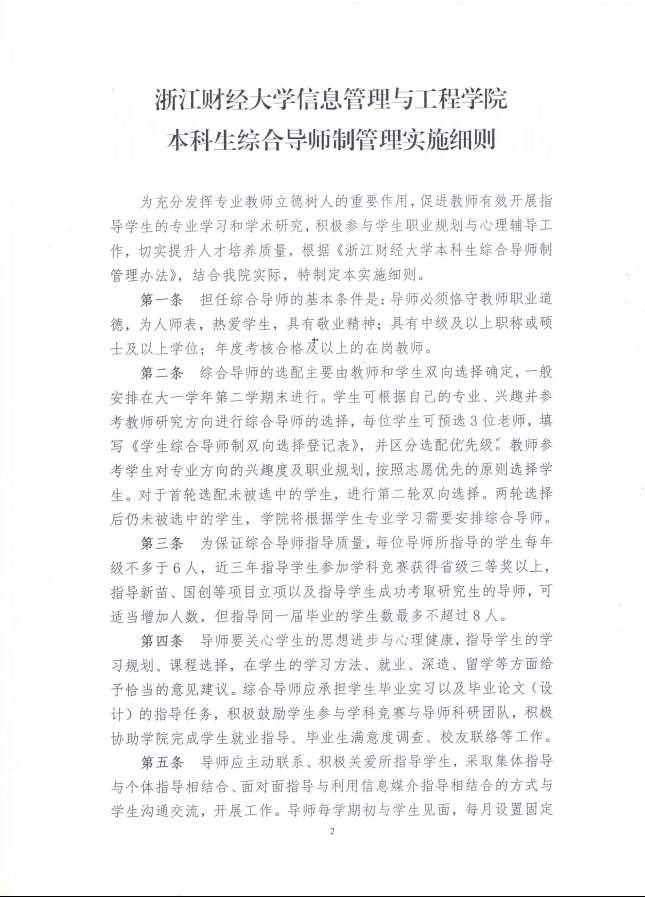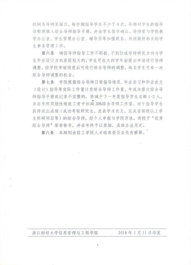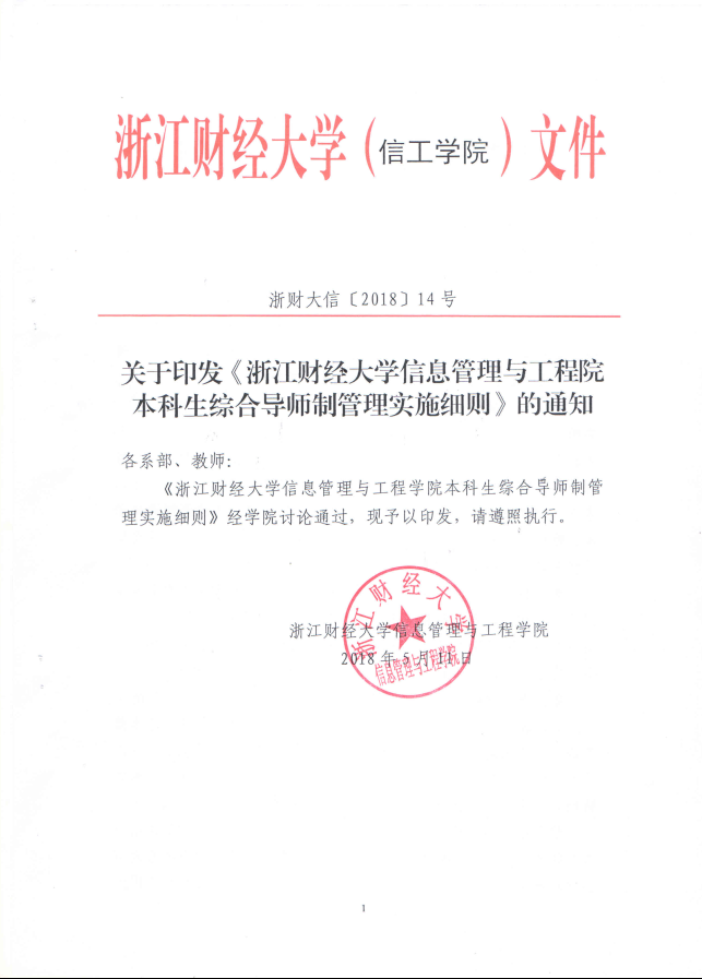 关于印发《浙江财经大学信息管理与工程学院本科生综合导师制管理实施细则》的通知