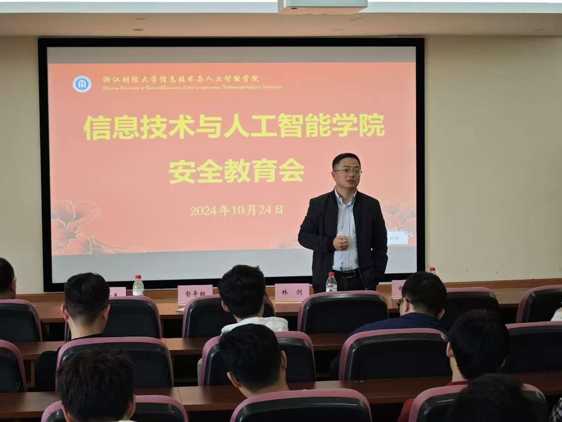在9302报告厅开展“安全教育”的专题讲座。学院副院长林剑教授担任主讲人,研究生教学督导组姚建荣教授、研究生辅导员吴泽勇、研究生秘书杨天亦及2024级全体硕士生和博士生参加,本次讲座旨在提高学生的安全意识和自我保护能力。