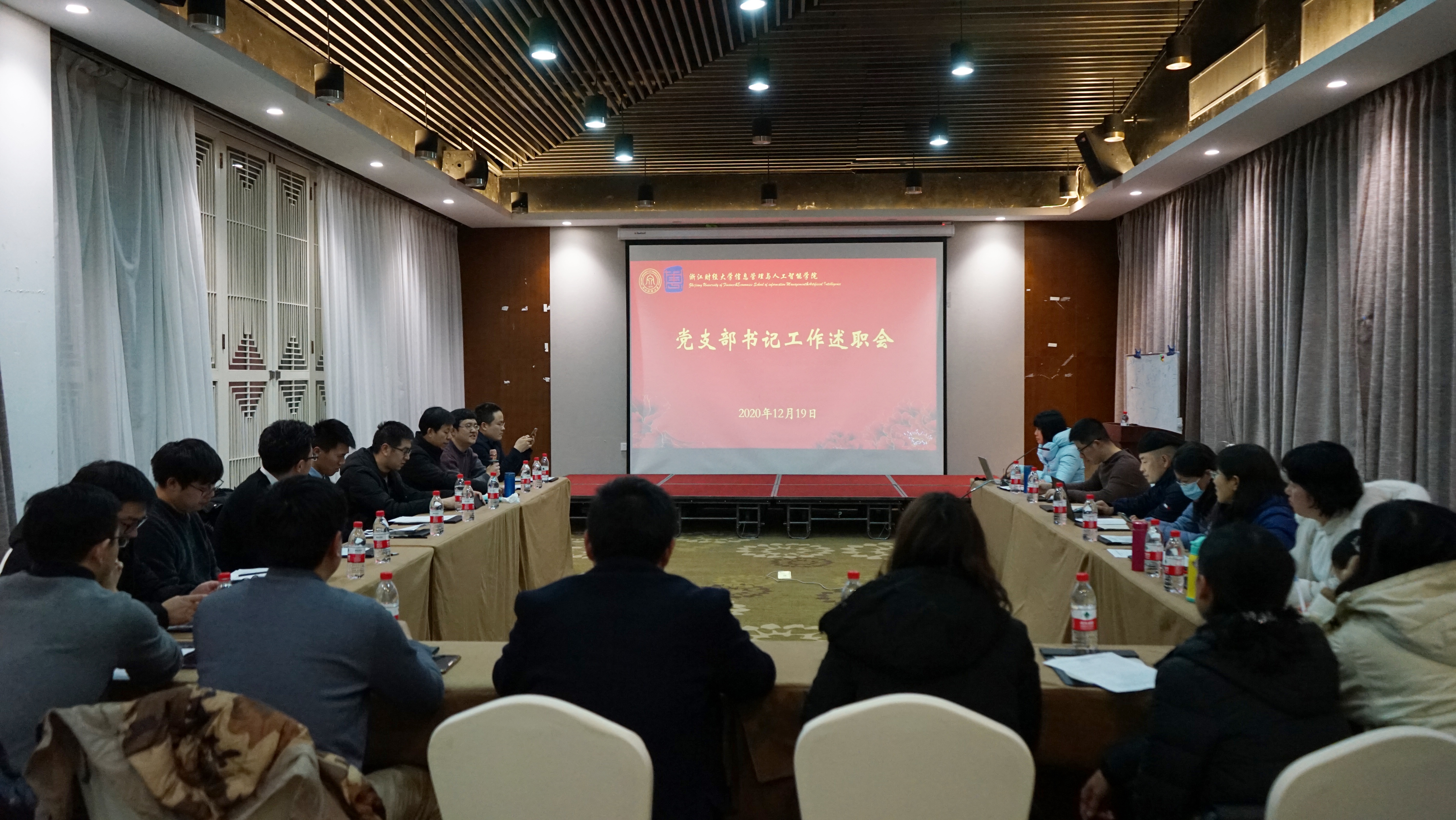 主题党日活动期间,学院还组织开展了2020年党支部书记述职工作会,会议由学院党委书记徐奇伟主持。会上,学院9个党支部书记逐一总结汇报了一年来各党支部的党建工作,并对党支部今后工作的方向进行了深入的交流探讨。徐奇伟对各党支部的工作表示肯定,他希望各党支部在今后的工作中继续围绕中心工作,组织好党员师生的政治理论学习;要始终坚持立德树人的根本目标,不断提升人才培养质量;要进一步增强党支部工作创新,加强校内外交流,进一步发挥好各党支部服务社会服务师生的作用。学院院长张帅对各党支部扎实的工作做了肯定,他总结了学院发展的现状和面临的挑战,希望各位党支部书记重视人才培养,做好专业建设,营造团结和谐,积极向上的学院氛围。
