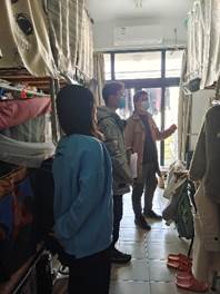 检查期间,除了关注寝室卫生,老师们亲切的与同学们交流了解寝室生活,嘱咐同学们要养成良好的生活习惯,合理安排大学学习,注意寝室用电安全,疫情期间外出做好防护,多了解反诈骗知识保护人身财产安全。