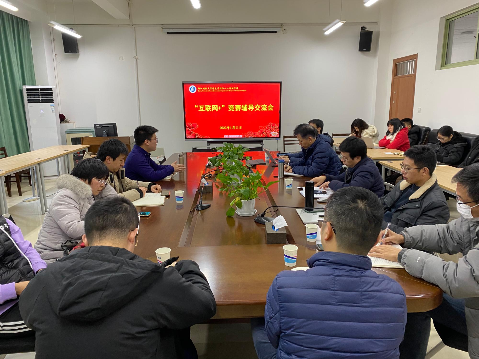在 9404会议室召开“互联网+”竞赛辅导交流会,会议特邀创业学院竞赛主管汤静超老师做分享交流。会议由学院党委副书记田聪主持,学院院长张帅、党委书记徐奇伟、副院长陈远高、院长助理隆清琦等近二十名教师参加本次交流会。