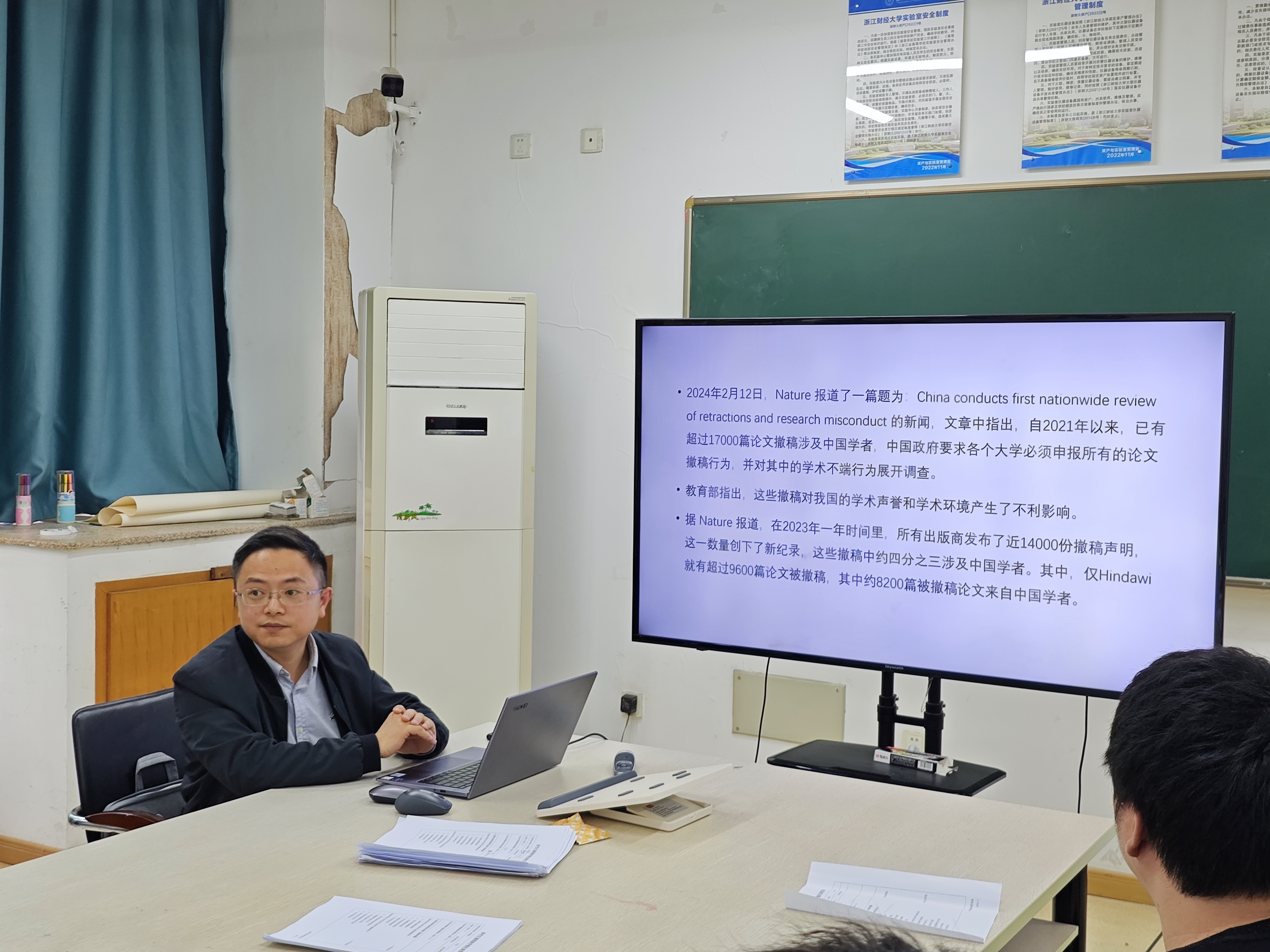 此外,林老师还分享了一些案例和经验,引导同学们认识到诚信在学术道德建设中的重要作用,并鼓励他们在学术研究和学习中勇于担当,坚持原则,做一个合格的学术人。他表示,学院将继续加强诚信教育,建立健全的管理机制,为同学们提供良好的学习和研究环境,共同构建学术道德新风尚。