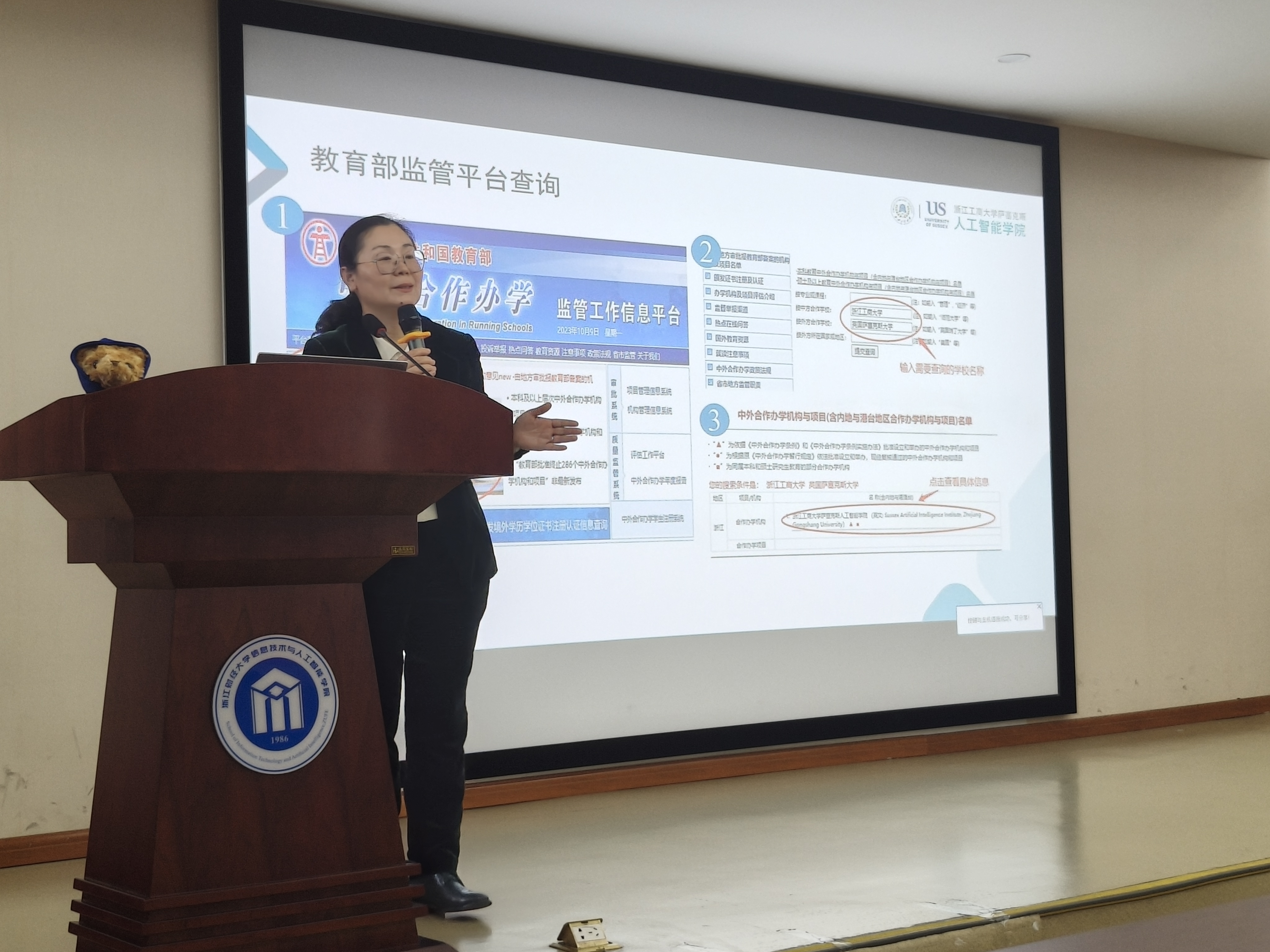 研途领航专题分享暨中外合作硕士项目科普篇在9302报告厅顺利开展。浙江工商大学萨塞克斯人工智能学院招生就业办马秀丽老师受邀分享。讲座吸引了我校众多对计算机、人工智能领域深造感兴趣的同学参与。