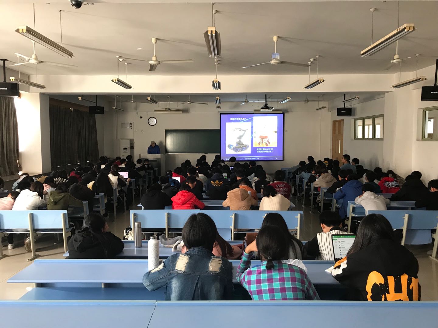 随后,潘博士生动地向同学们介绍了机器人技术和人工智能的专业基础知识,让同学们对这两项技术有了初步认知。之后,他向同学们讲述机器人技术和人工智能与我们日常生活的紧密联系,介绍了这两项技术未来的就业发展前景。为了让同学们对两项技术有更直观明确的认识,潘博士向在座同学们展示了许多科技成品图片。这些成品有工业上使用的工业机器人,有深海探测的海洋机器人和外太空探测的机器人,以及军事上提供后勤服务的专用机器人等等。通过潘博士的介绍,同学们可以看到生活的方方面面都有着机器人技术的身影。