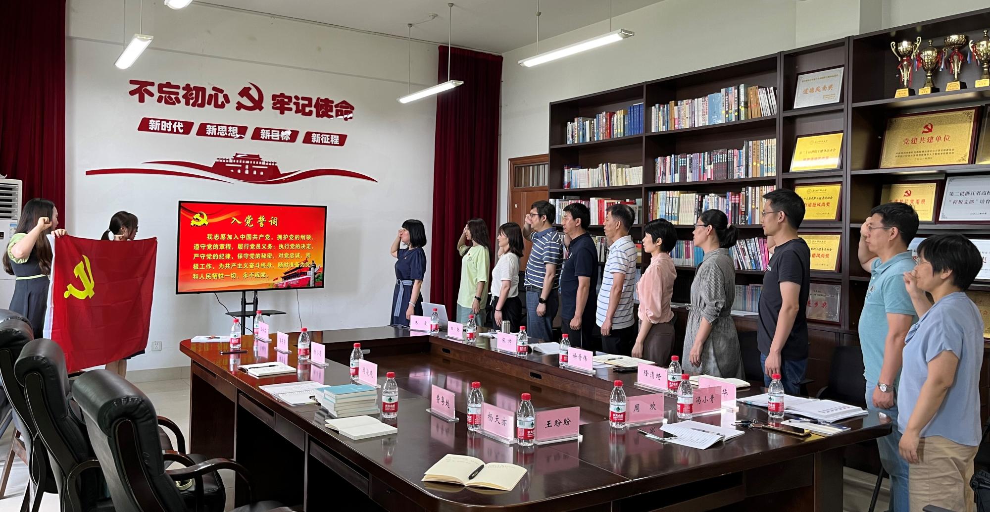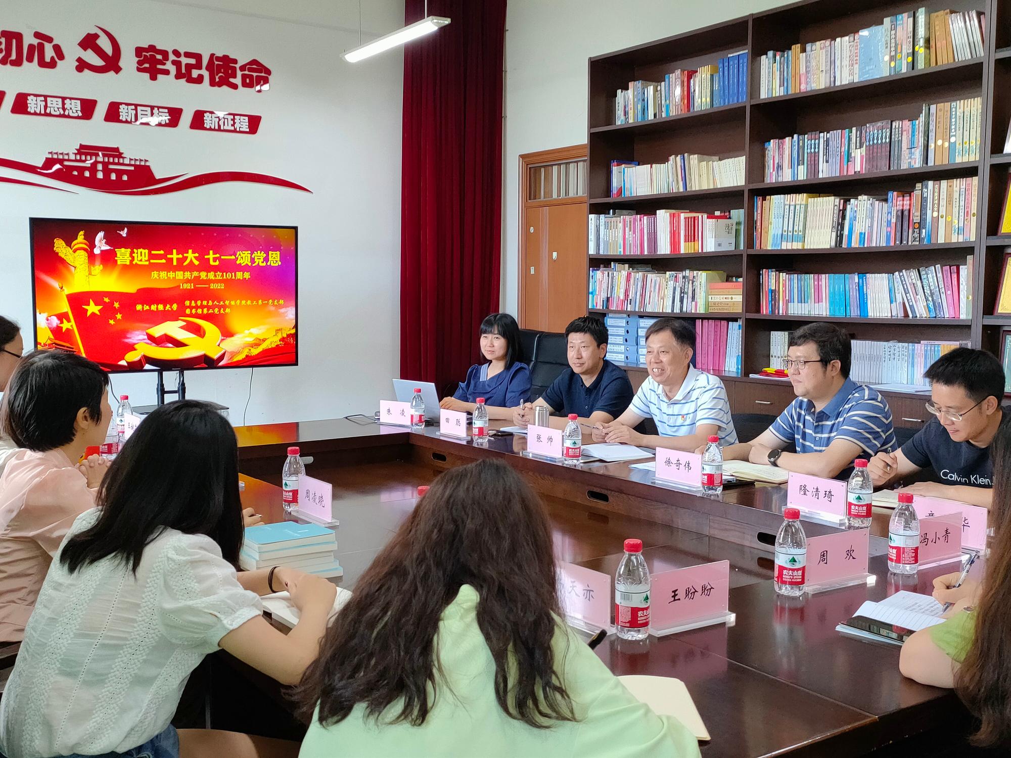 教工第一党支部与图书馆第二党支部联合学习宣传贯彻省第十五次党代会精神,集体过政治生日,重温入党誓词,喜迎二十大。