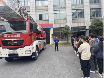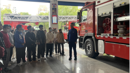 学生第四党支部书记徐军军、学生第一党支部书记马硕和保卫处党支部林榕老师的带领下抵达白杨消防救援站,消防救援站干部代表全体消防战士向学生们的到来表示了热烈的欢迎,并简要介绍了基层消防站的基本情况和日常工作任务。