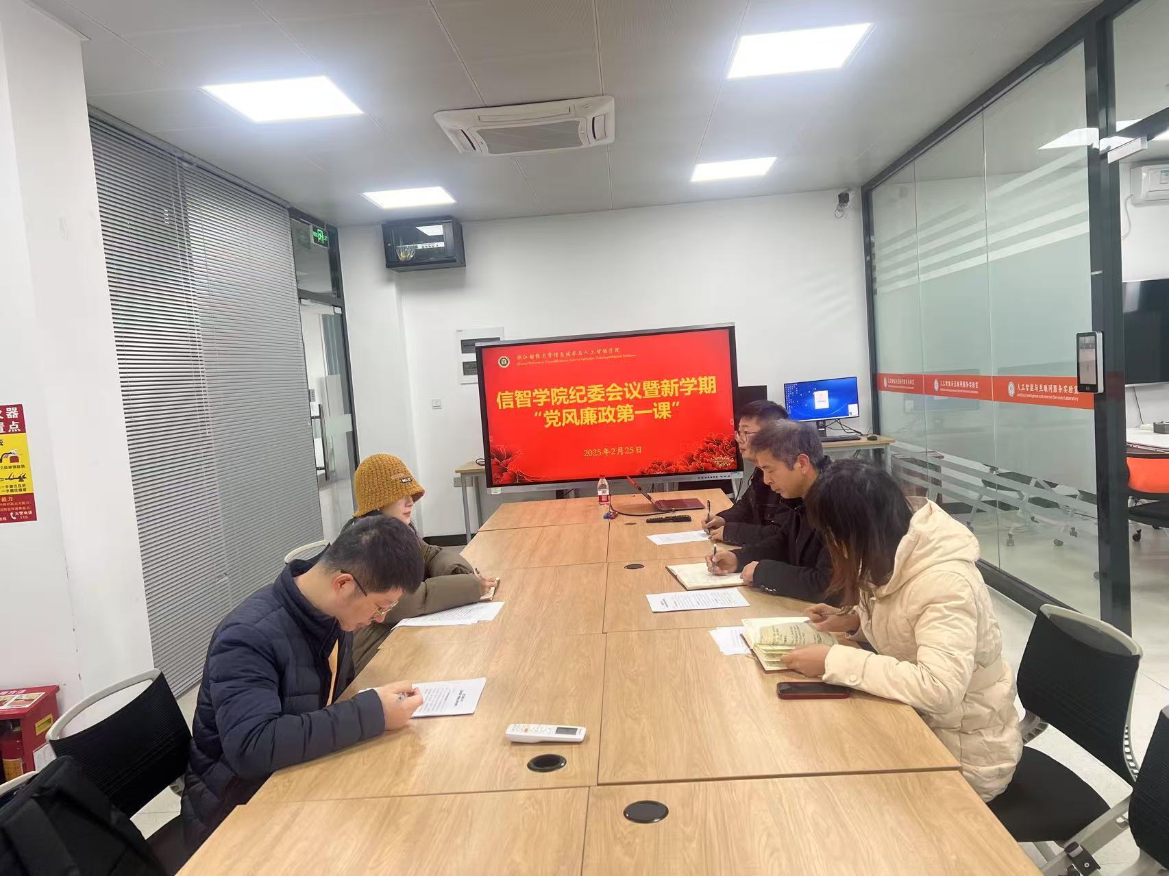 2月25日上午,学院纪委在9301C会议室召开会议,旨在传达“党风廉政第一课”学习要求,并组织签订浙江财经大学纪检监察干部廉洁自律承诺书。学院纪委书记吴轶韵和纪检委员参加会议。