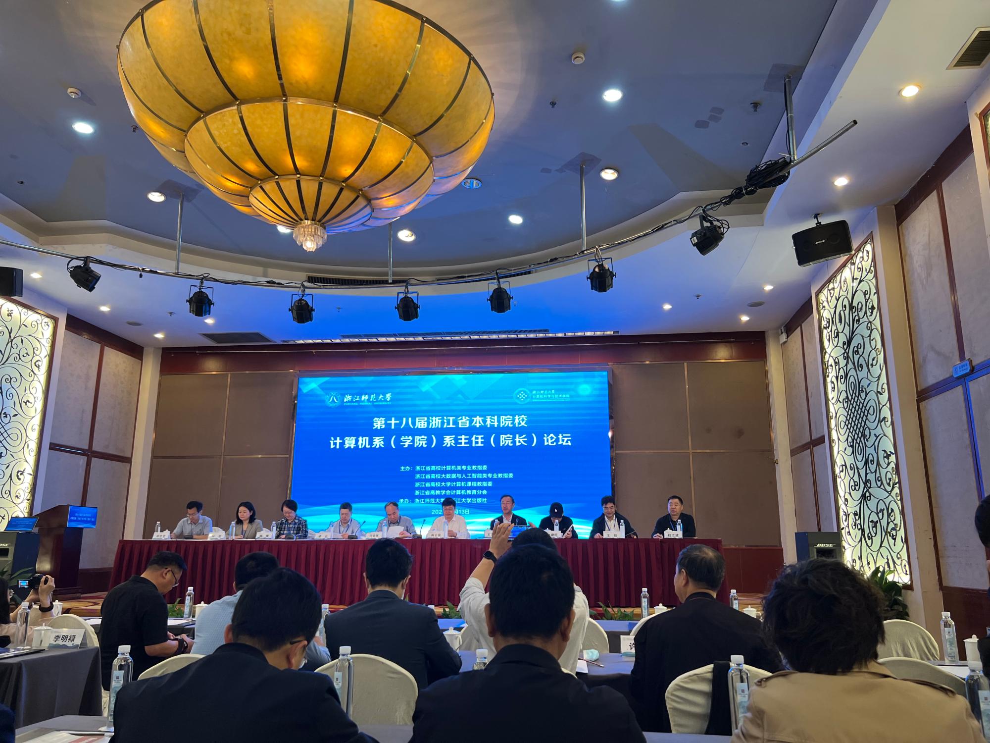 浙江省高校计算机类专业教学指导委员会主任委员、浙江省高校计算机教学研究会会长何钦铭教授、浙江省高校大数据与人工智能类专业教学指导委员会主任王万良教授、浙江大学计算机学院副院长巫英才特聘教授、浙江财经大学人工智能学院院长张帅教授、浙江师范大学计算机科学与技术博士点负责人李明禄教授、上海交通大学计算机科学与工程系主任吴帆教授、浙江大学人工智能研究所所长吴飞教授、浙江大学人工智能研究所副所长肖俊教授、杭州电子科技大学计算机学院副院长张建海教授等省内外知名专家应邀参会,并围绕计算机学科建设发展与人才培养、工程教育等主题作了发言。