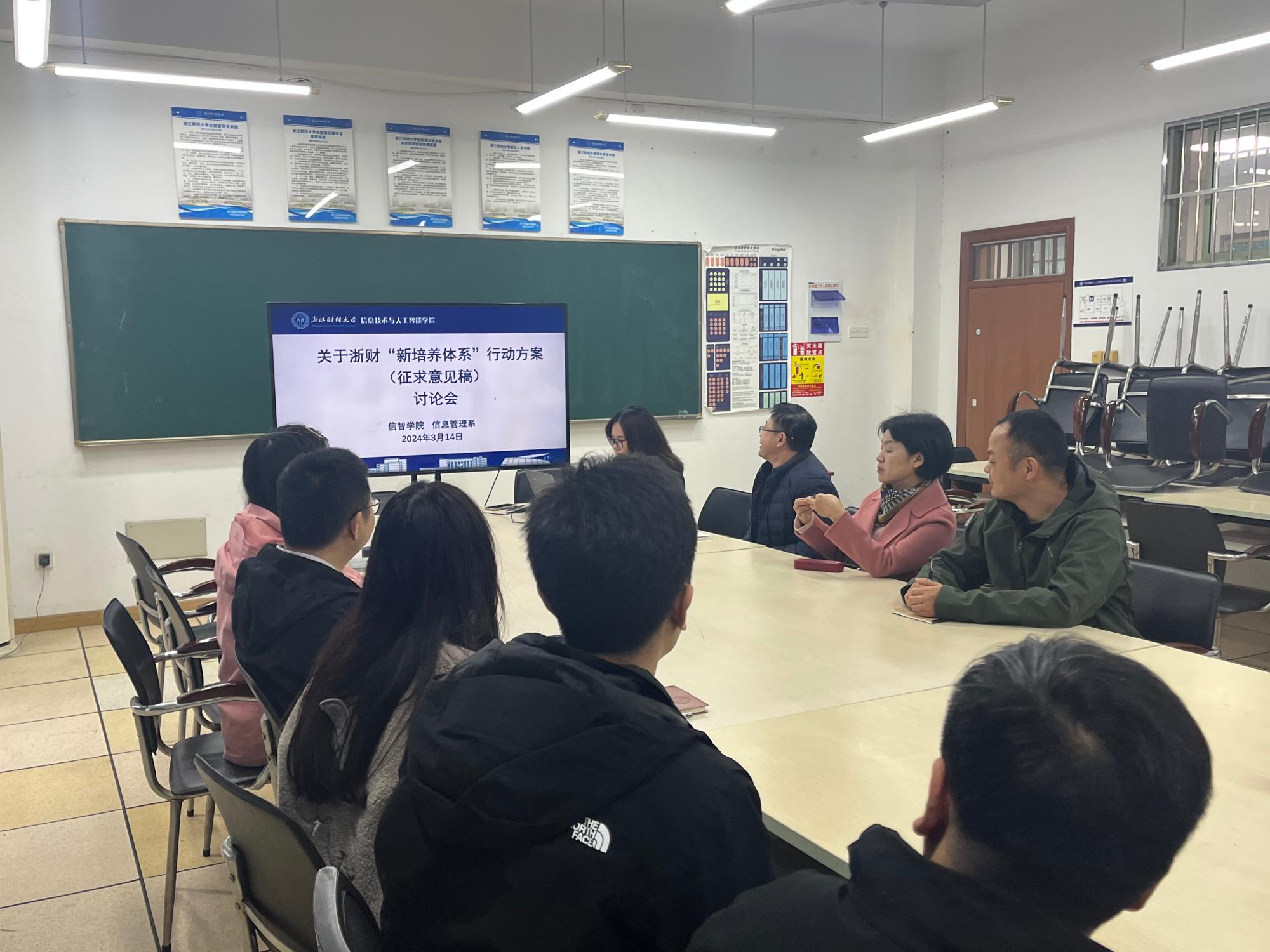各系部首先集中研读“浙江财经大学‘新培养体系”行动方案”(征求意见稿),然后由系部主任讲解方案的主要发展目标与培养体系要求,并收集相关意见与建议。