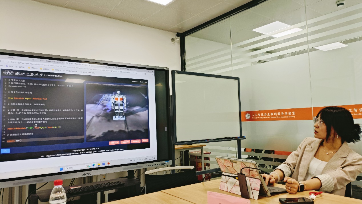 会上,杨柏林院长详细介绍了其团队在基于Python语言的计算机基础课程方面的创新与探索,以及智能群体机器人虚拟仿真实验项目方面的研究成果和扩展应用。该项目在教育教学领域中具有潜在的影响力和很好的未来发展前景,其虚拟仿真技术在提高学生学习兴趣,培养解决问题能力和创新思维方面起到了重要作用。