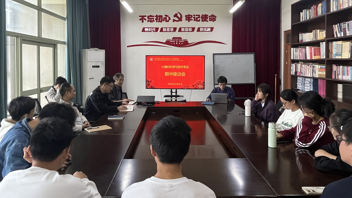 10月29日,计算机系在9-506举办2024-2025学年第1学期期中座谈会,计算机教师李一啸、陈明晶、姜罗罗、学办主任洪宝华、教学办孙山、实验中心王振华、张睿峰,以及24级计算机1-3班学生代表参加了此次座谈会。