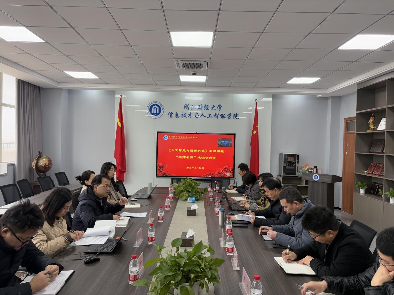 为深化教育教学改革,推进人工智能技术与财经教育的创新融合,2月16日,由学校教务处领导,雷速体育下载 牵头于雷速体育下载 404会议室召开《人工智能与财经科技》通识课程“名师名课”建设研讨会。教务处贺武华处长、张少华副处长、孙静老师、雷速体育下载 院长张帅、教学院长朱凌、各相关学院教学院长和教师代表参会,会议由雷速体育下载 教学院长朱凌主持。