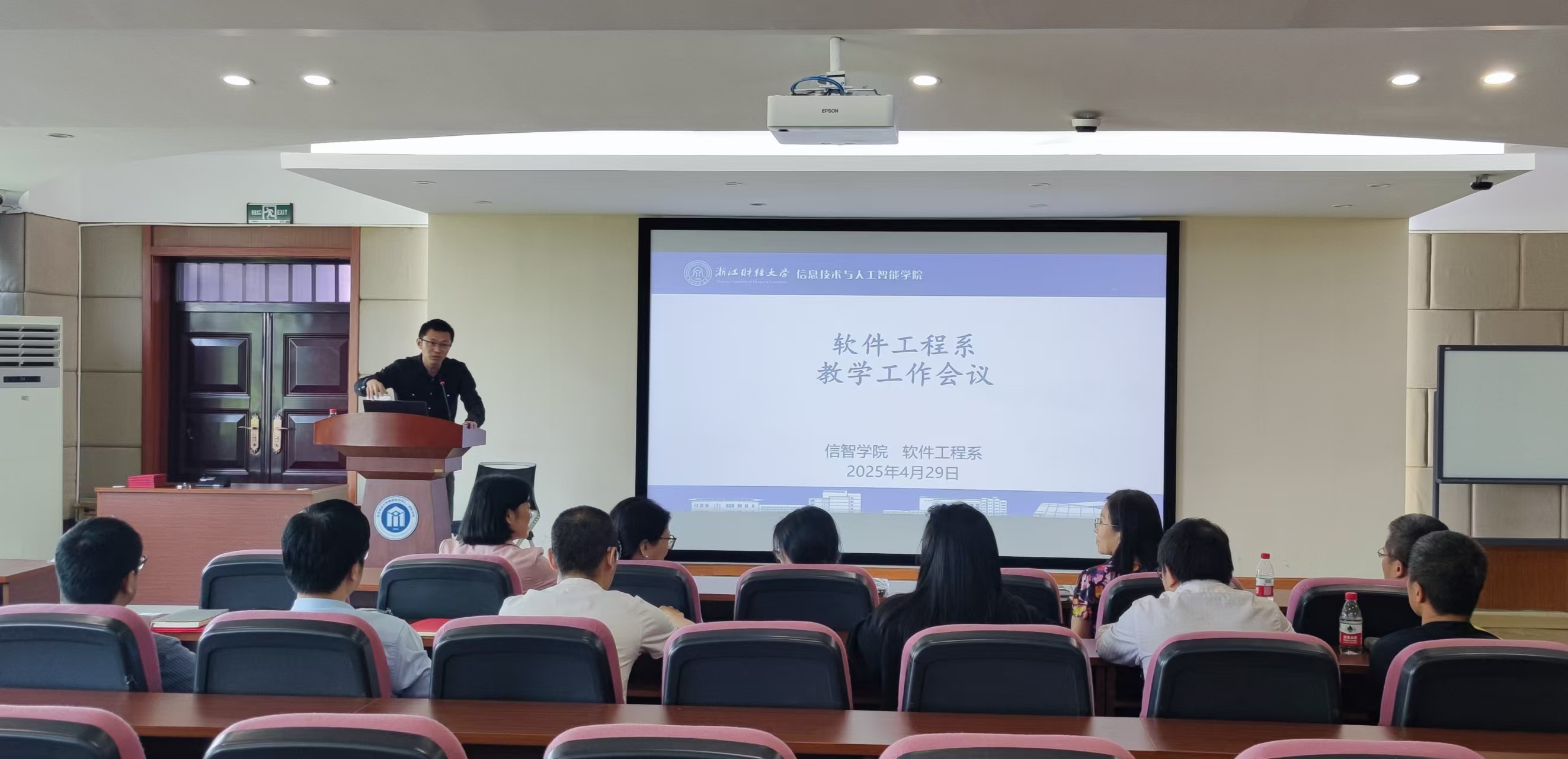 2025年4月29日,软件工程系在9302召开教学工作会议,会议由系主任涂乐主持,全体软工系教师参加。
