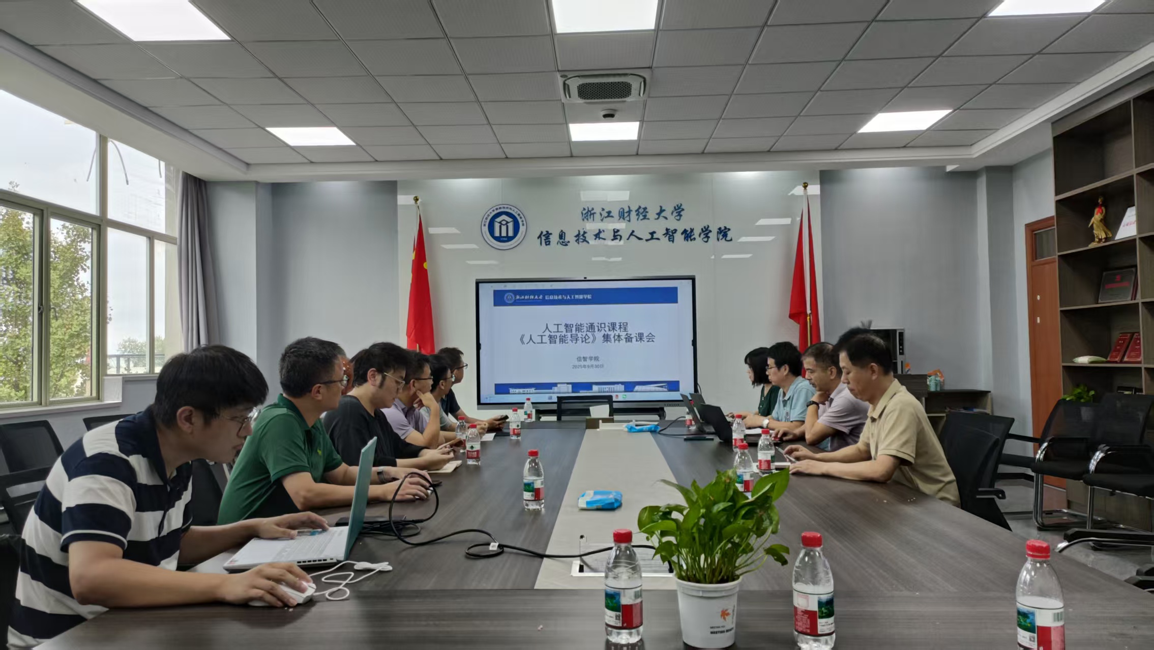 9月30日,《人工智能导论》通识课程组在学院楼404会议室召开本学期第一次集体备课会。会议由教学院长朱凌主持,院长张帅、课程组陈明晶、章华、刘亚楠、高刚毅、陈宪宇、姜罗罗、杨泽、陈勇、胡扬帆、聂佳浩等教师线上线下共同参会。