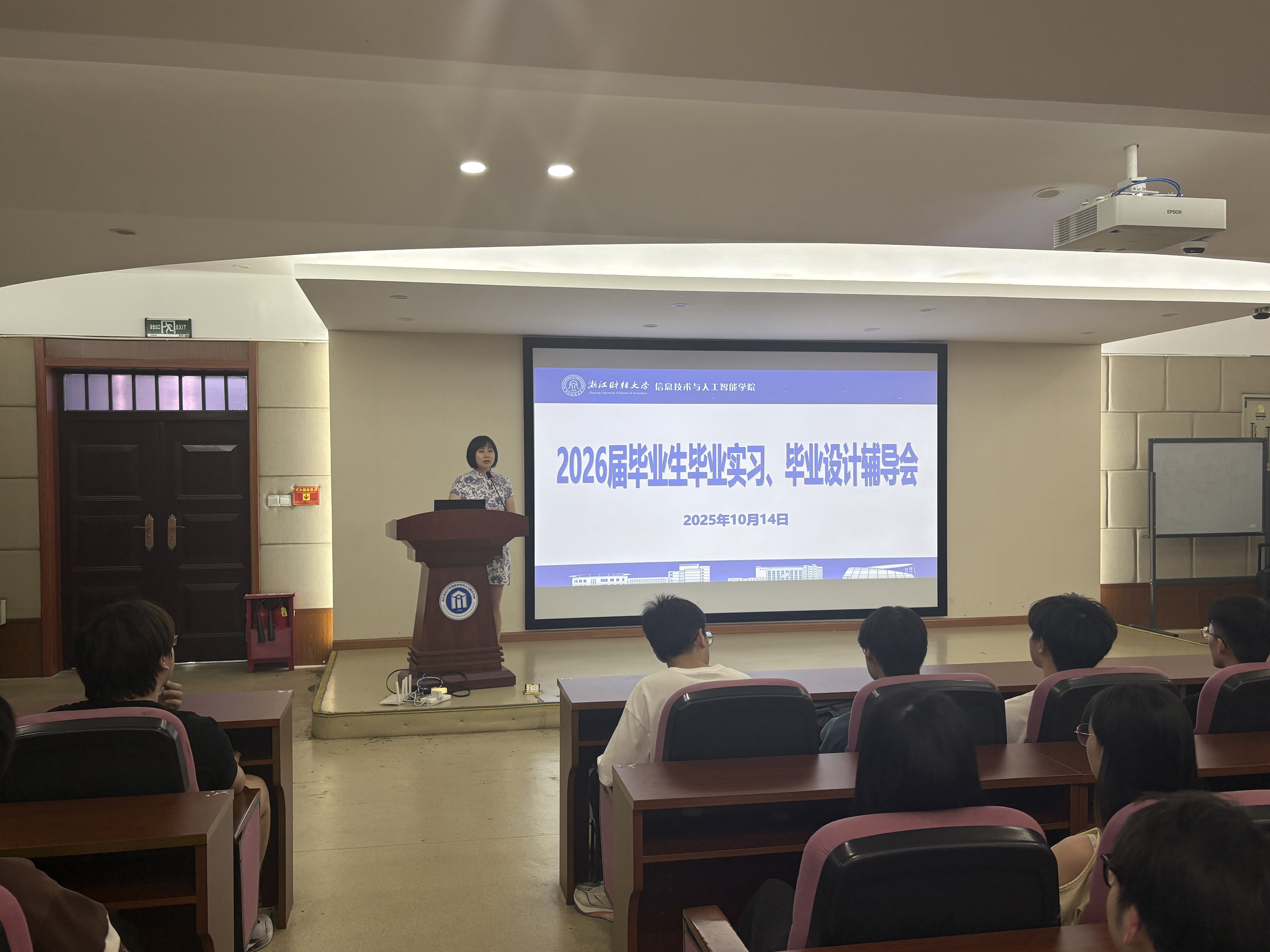 于10月14 日下午在9302教室,面向全体2026届本科生召开毕业实习与毕业论文(设计)动员指导大会。此次会议由学院教学院长朱凌主持。