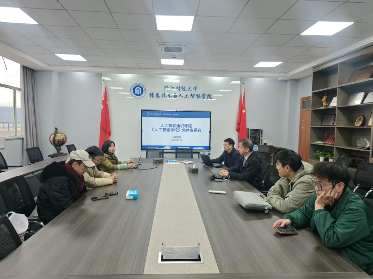 1月4日,《人工智能导论》通识课程组在学院楼404会议室召开本学期第二次集体备课会。会议由教学院长朱凌主持,课程组陈明晶、章华、陈宪宇、姜罗罗、杨泽、陈勇、胡扬帆、聂佳浩等教师共同参会。