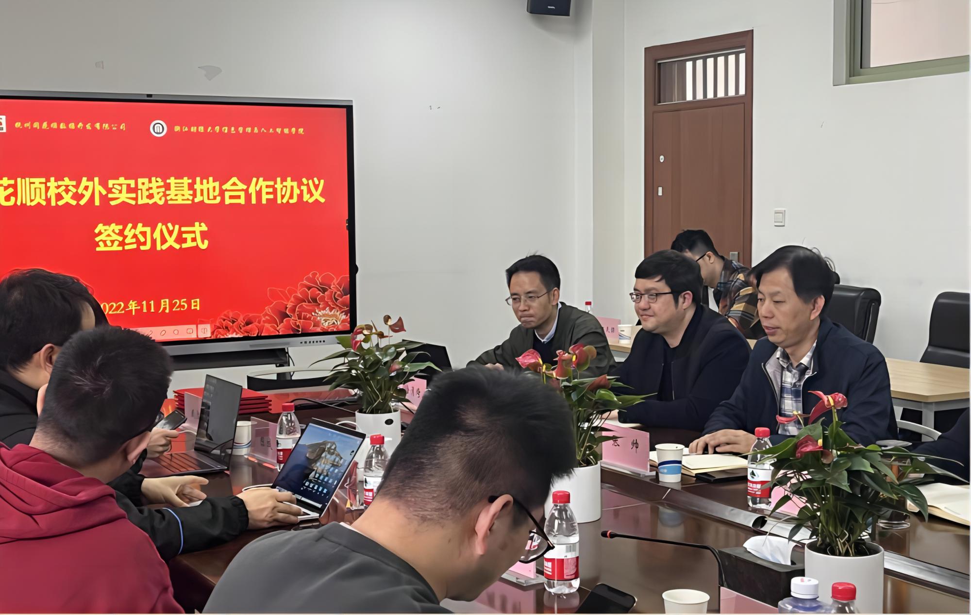 11月25日下午,信智学院与杭州同花顺数据开发有限公司举行合作框架协议及实践教育基地协议签约仪式。杭州同花顺数据开发有限公司事业部经理李振科、高校事业部运营总监陈城、产品经理周慧明、高校事业部业务经理臧洁和高校事业部大客户经理吴思鹏,信智学院院长张帅、学院党委书记徐奇伟、副院长陈远高、副院长隆清琦、各系部主任以及相关课程负责人出席了签约仪式。