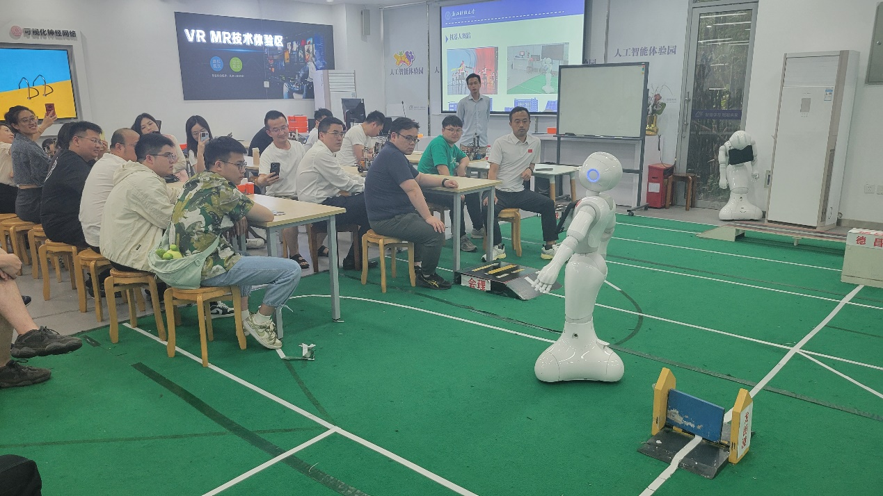 本次培训活动中,学员们参观了浙江财经大学人工智能体验园,相关老师分享金融与科技、机器人舞蹈、机器人重走长征路,展示了AIGC生成的流程、方法与案例。