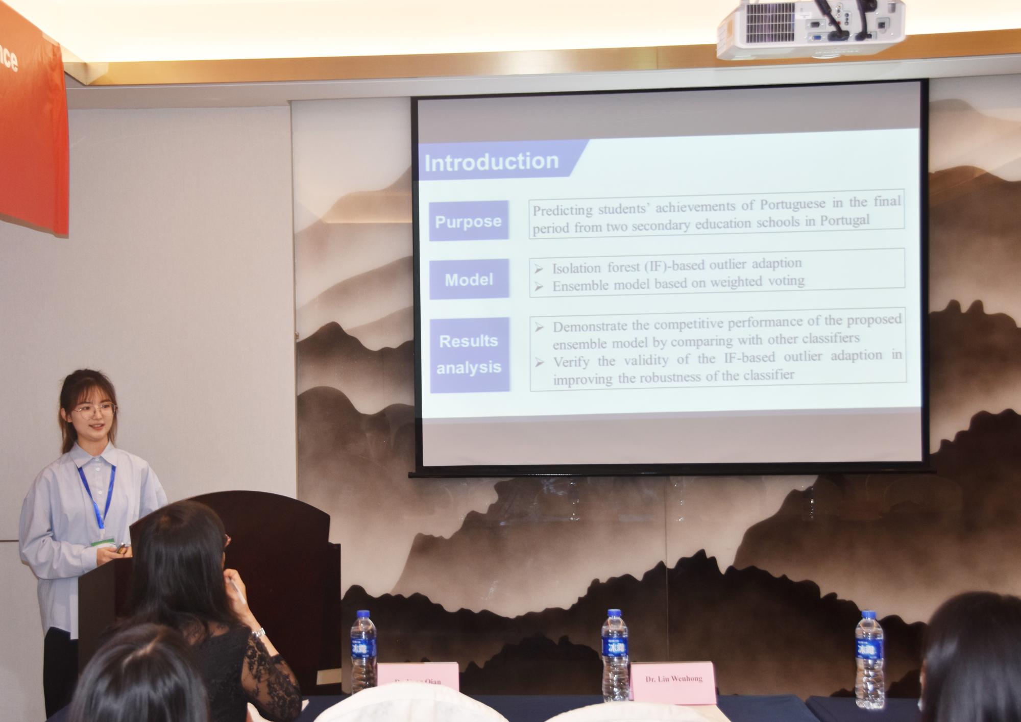 研究生陈洁、施嘉璇参加了此次会议并宣读了题为“Education data mining application for predicting students’ achievements of Portuguese using ensemble model”的学术论文,并与与会专家学者们进行了深入的交流和讨论。