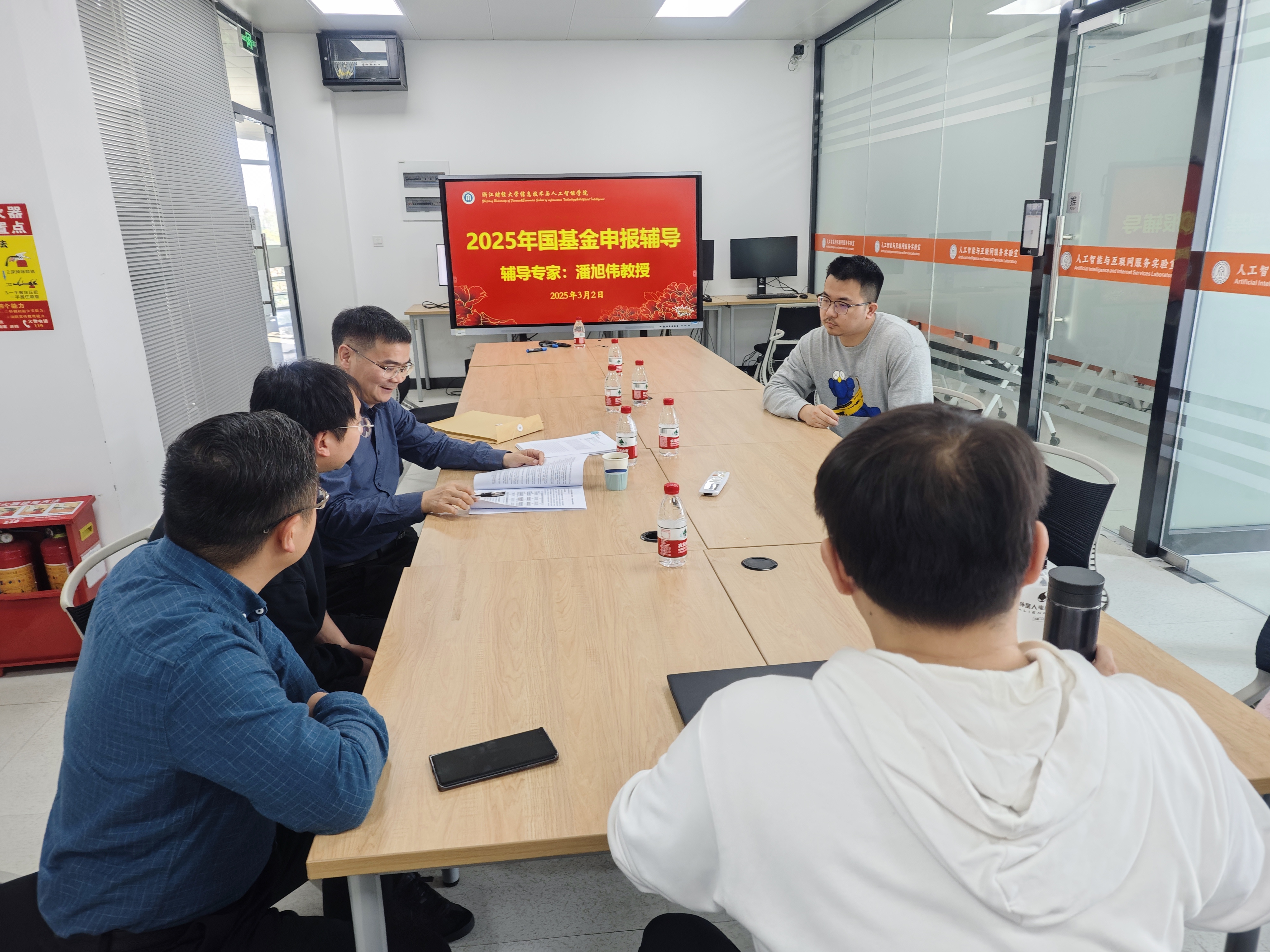 会前,潘教授已仔细研读每位青年教师的申报书初稿,为辅导工作做足准备。会上,潘教授与青年教师们展开了深入的面对面交流,针对申报书的创新点挖掘、研究方法设计、可行性分析等关键环节,潘教授凭借深厚的专业知识与丰富的评审经验,给出了专业且细致的指导意见。他以通俗易懂的方式剖析要点,深入浅出地讲解撰写重点,帮助青年教师们迅速厘清思路,对申报重点有了更为清晰的认知。
