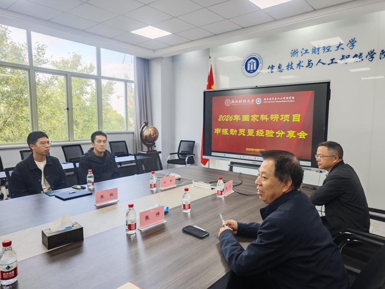 10月23日下午在信智学院楼404会议室举行2026年国家科研项目申报动员暨经验分享会。学院院长张帅教授作申报动员演讲,立项国家级课题的青年教师张翔博士、特邀管理学院孙琪博士为我院教师作国家级科研项目申报经验分享,会议由学院科研院长林剑教授主持,学院申报国家课题的教师参会。