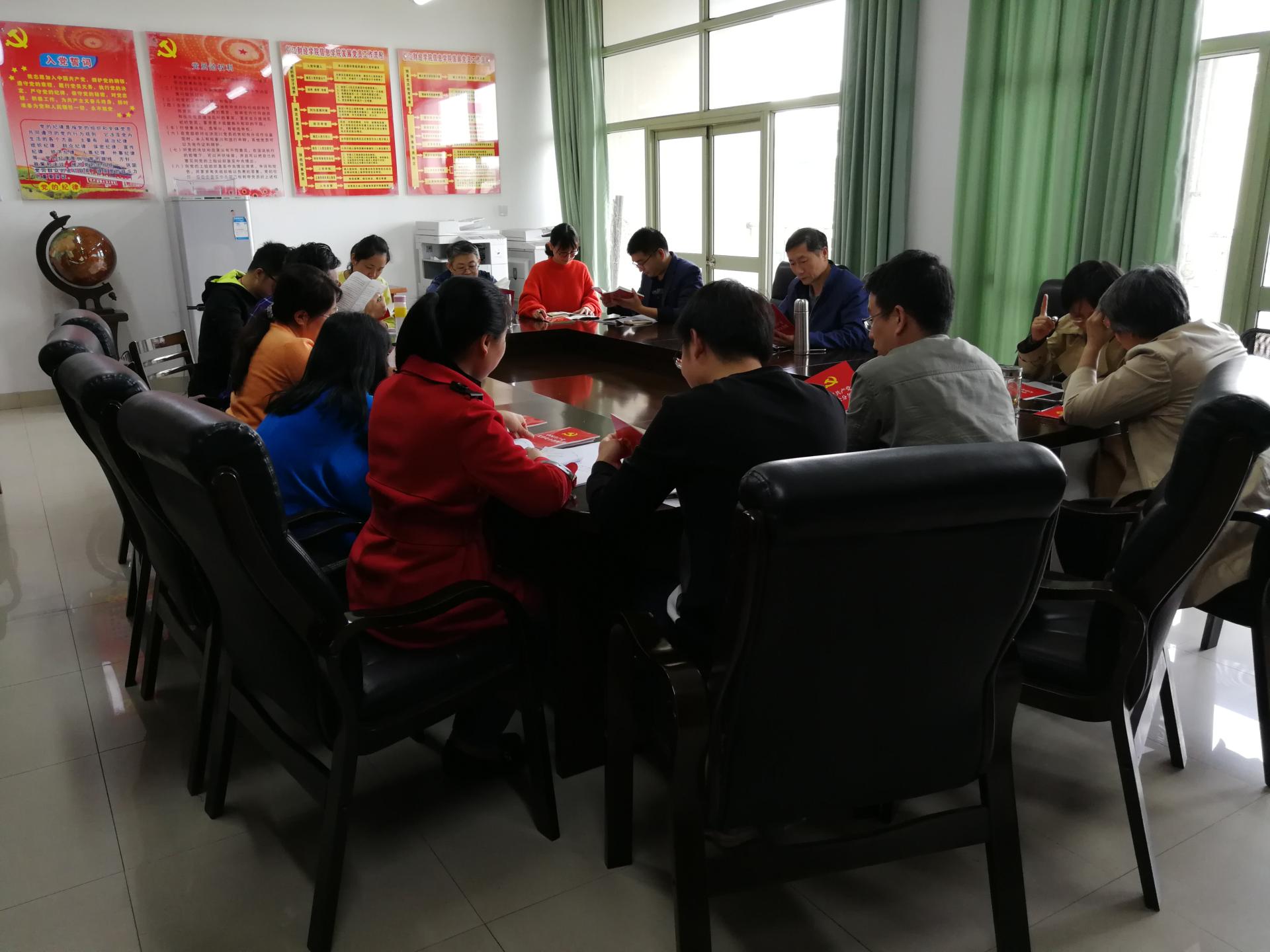 2018年10月23日下午,信工学院教工第一党支部在9506召开“重教育遵条例”专题学习会议,集中学习了《习近平在全国教育大会上发表的重要讲话》以及新修订的《中国共产党纪律处分条例》。