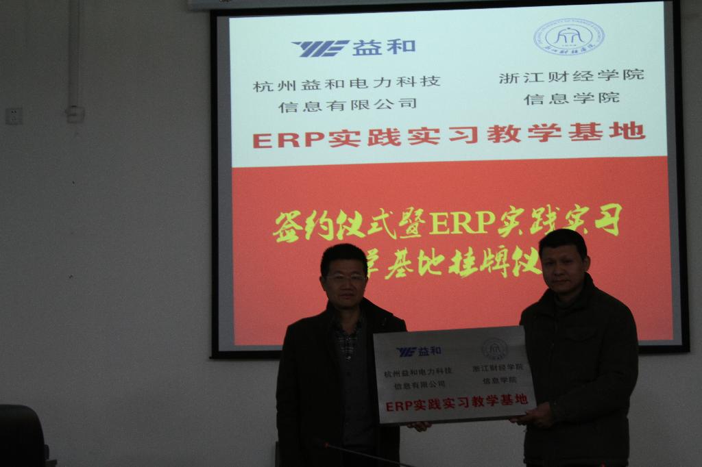 合作共建《ERP实践实习教学基地》启动仪式在学术中心第二报告厅举行。信息学院副院长张文宇教授出席,并和杭州益和电力科技信息有限公司总经理许俊杰先生一起为实习基地挂牌。ERP实践实习教学基地建设的启动,标志着雷速体育app