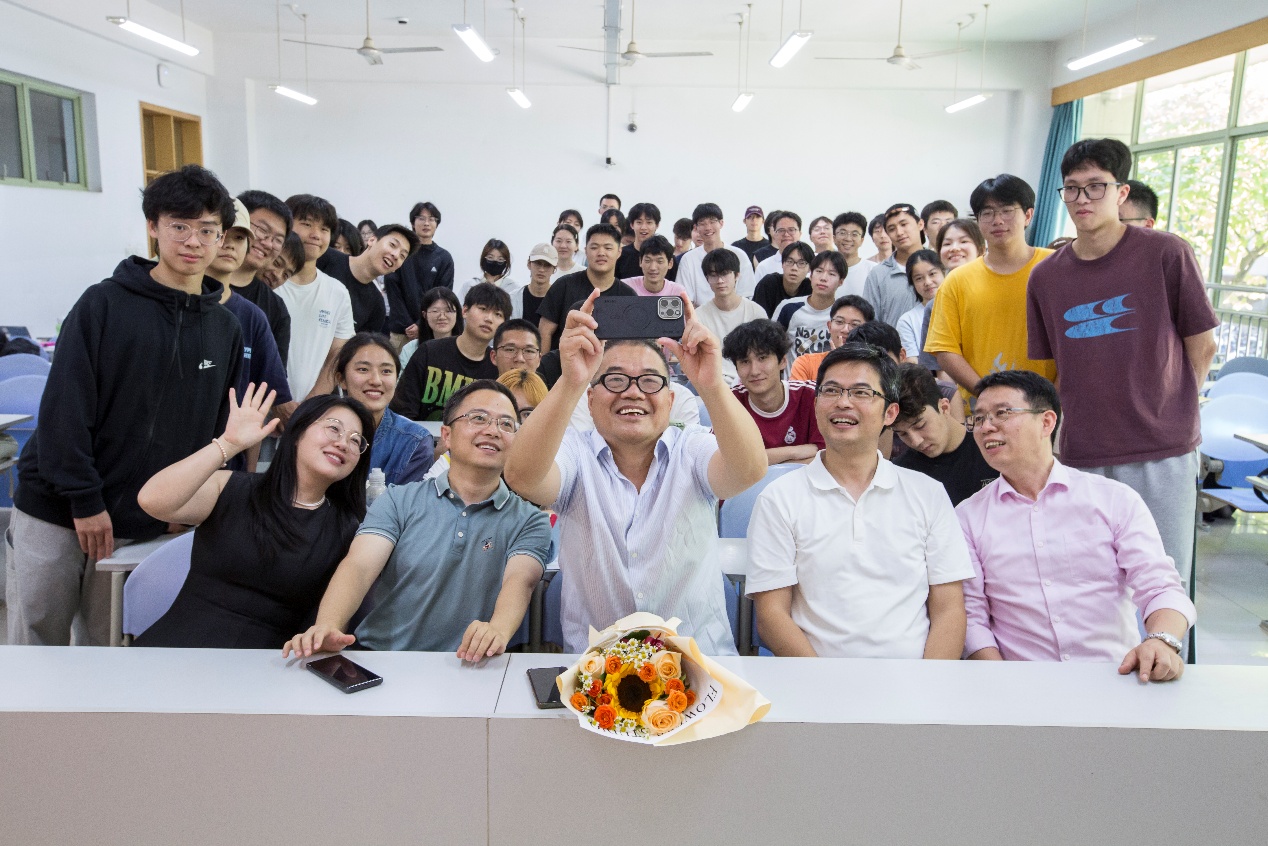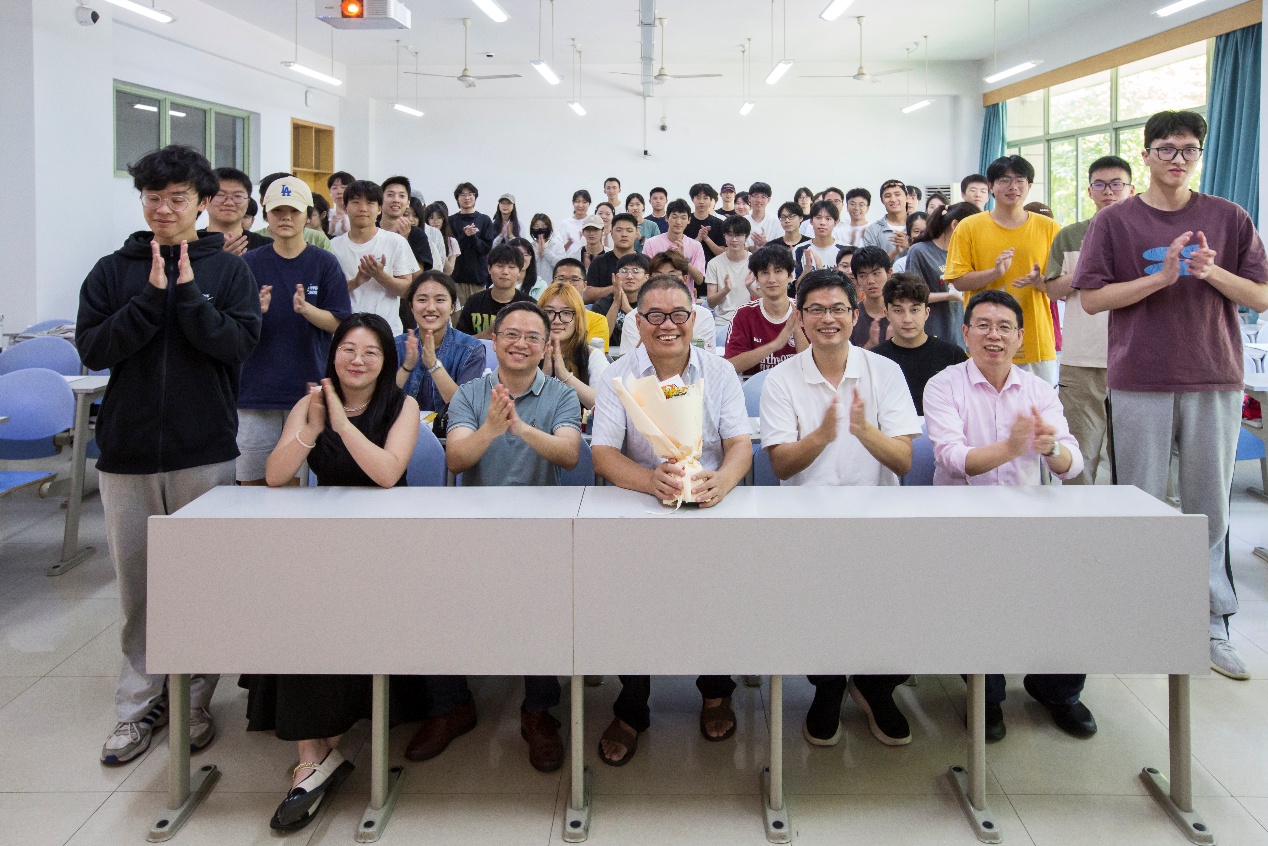 C104教室温情上演。学院为即将告别讲台、从教34周年的王继林教授举办了《信息安全基础》课程结课暨荣休仪式。学院党委书记吴翼泽、副院长林剑及青年教师代表共同出席,见证这一感人时刻。