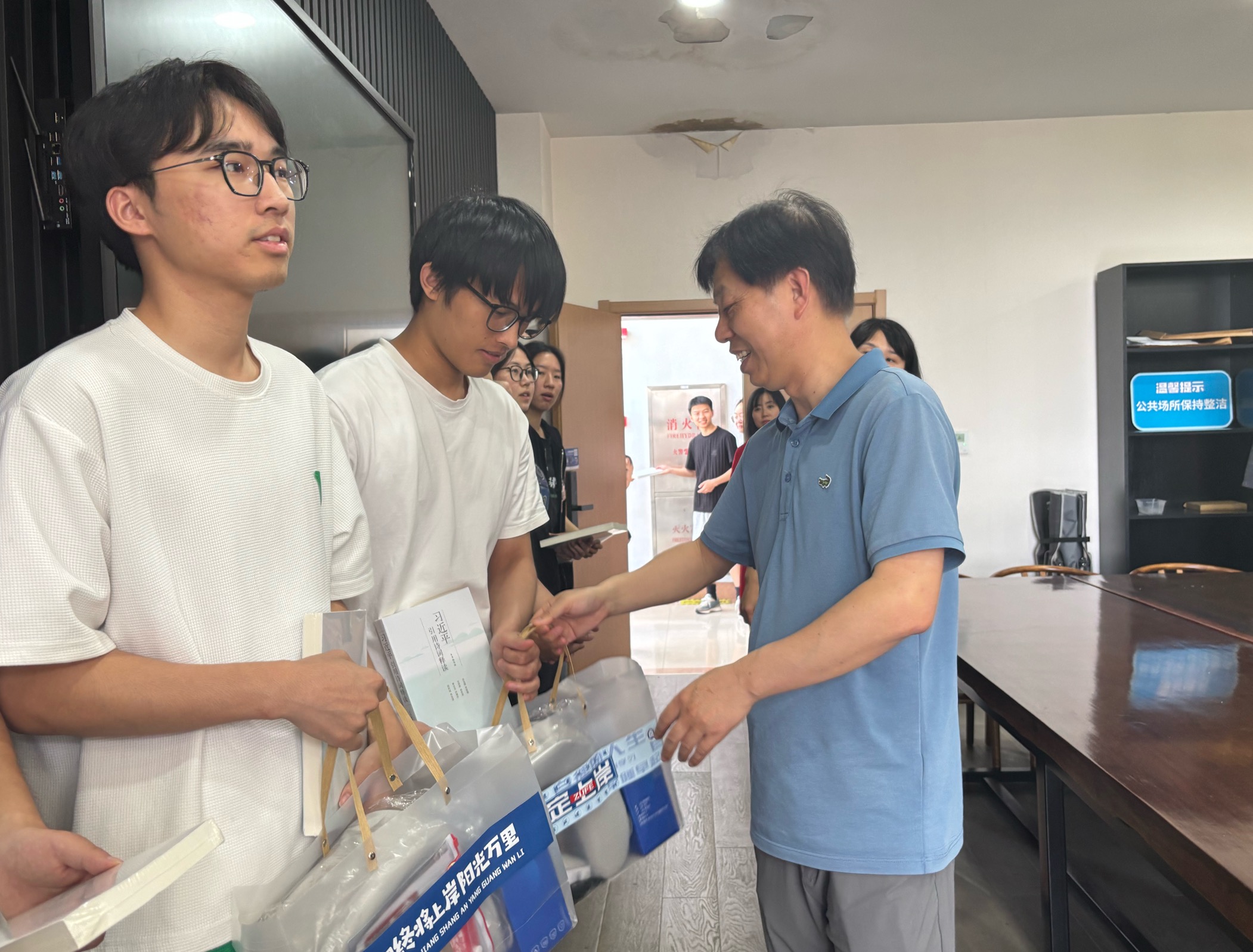 院长张帅、副院长林剑、朱凌、党委副书记吴轶韵及全体辅导员深入考研自习室,看望奋战在备考一线的2026届考研学子,送上精心准备的“考研能量包”,以温情驱散酷暑,用鼓舞点燃斗志。