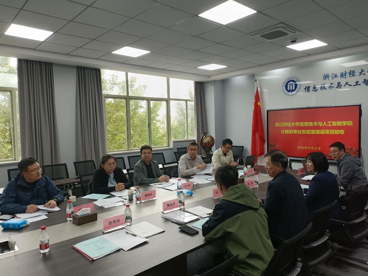 2025年10月21日下午,我校省财政专项建设项目计算机专业实验室验收大会在学院顺利举行。本次验收专家组由杭州电子科技大学王万强老师、中国计量大学魏艳红老师、杭州师范大学陶国芳老师,以及我校经管实验中心罗松老师、学院软件工程系主任涂乐老师共同组成。学校资产与实验管理处副处长黄伟泷、实验管理办公室赵李冰老师、采购管理办公室涂建辉老师,学院院长张帅、教学副院长朱凌、党委副书记(兼纪委书记)吴轶韵,实验中心工作人员以及项目建设供应商代表一同参加了验收会议。