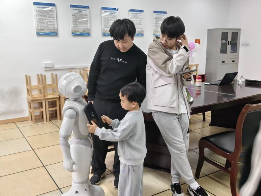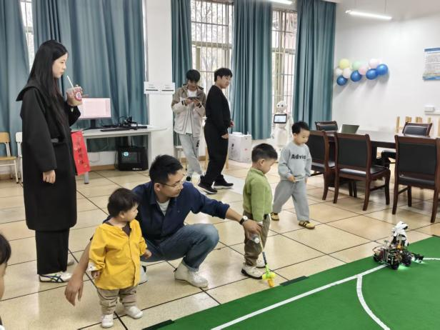 众多校友携子女归来,在人工智能体验区与智能机器人、仿生机器狗亲密互动,在欢声笑语中感受科技的无穷魅力。这不仅是一堂生动有趣的科普启蒙课,更是一种跨越代际的关于信智精神的血脉相承与生生不息。