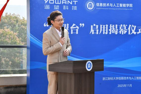 下午1:30,众人期盼已久的“遥望台”启用揭幕仪式暨校友座谈会隆重开场。浙江财经大学副校长李占荣,遥望科技董事长兼CEO、2005届计算机专业校友谢如栋,校友办公室主任吴玻、学院院长张帅、学院领导班子等,以及2005届校友参加,仪式由学院党委书记吴翼泽主持。副校长李占荣与校友谢如栋共同为 “遥望台” 揭牌,标志着这一蕴含深情反哺与薪火传承的崭新育人平台正式投入使用。