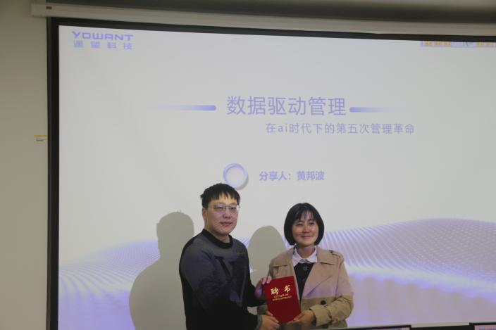 仪式后,遥望科技技术总监黄邦波以《数据驱动管理——在AI时代下的第五次管理革命》为题,为在场师生带来干货满满的数字科技专题讲座。学院副院长朱凌为黄邦波颁发共享导师证书。