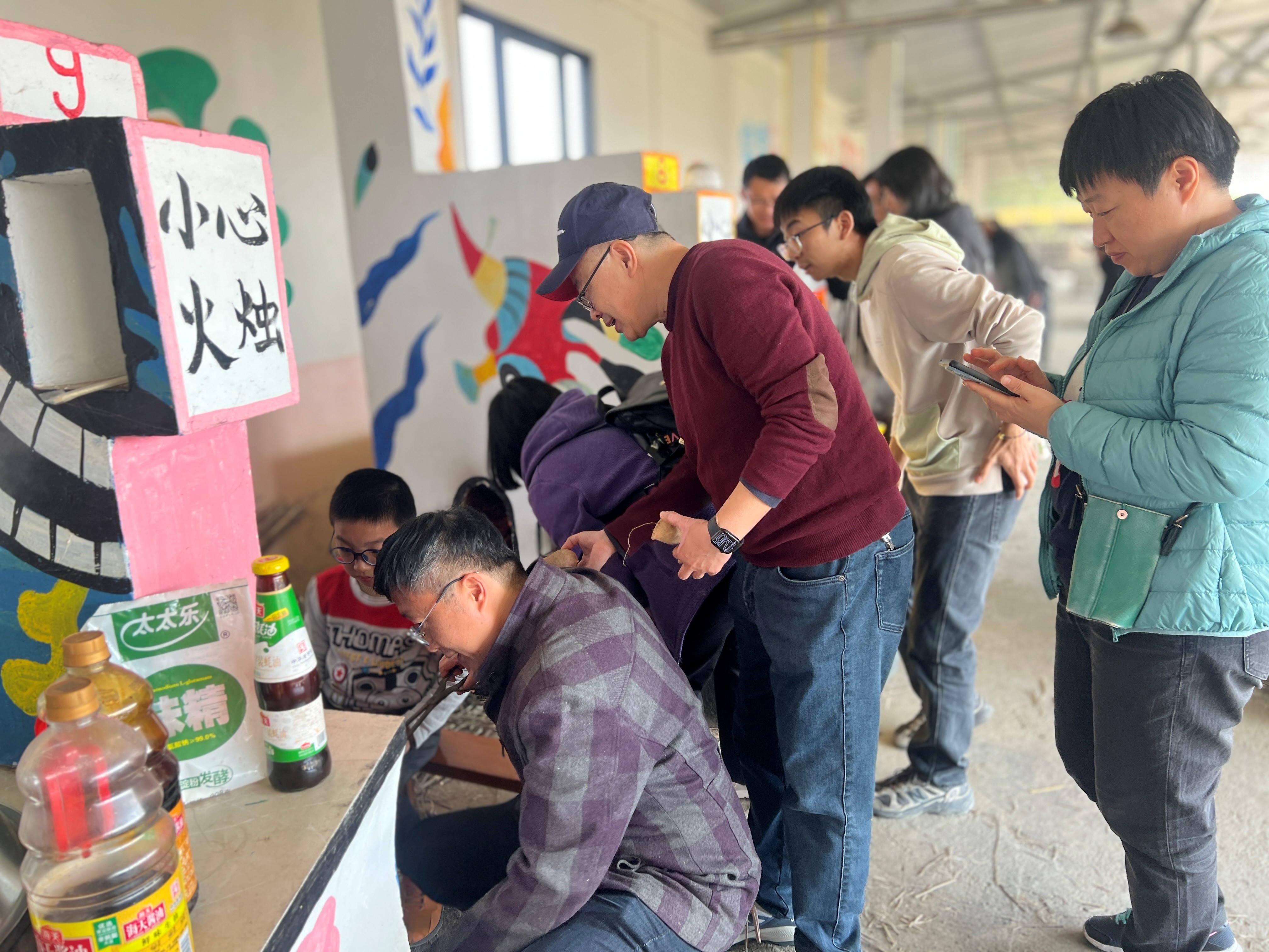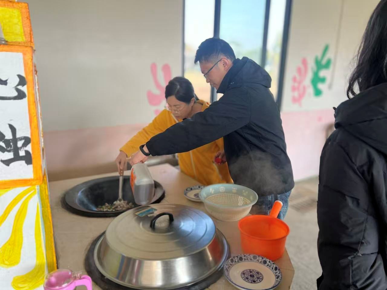 “野灶炊烟乡味起,分工协作乐相宜”。正午时分,窑里村的田野间飘起烟火气。老师们开启“野火饭”体验,有人拾柴生火,有人择菜备料,带娃的家长们也带着小朋友帮忙递碗擦桌,欢声笑语裹着饭菜香漫过田间。大家虽沾了些烟火气,脸上的笑意却格外真切——这乡野间的一餐,是味蕾的满足,更是团队默契的升温。