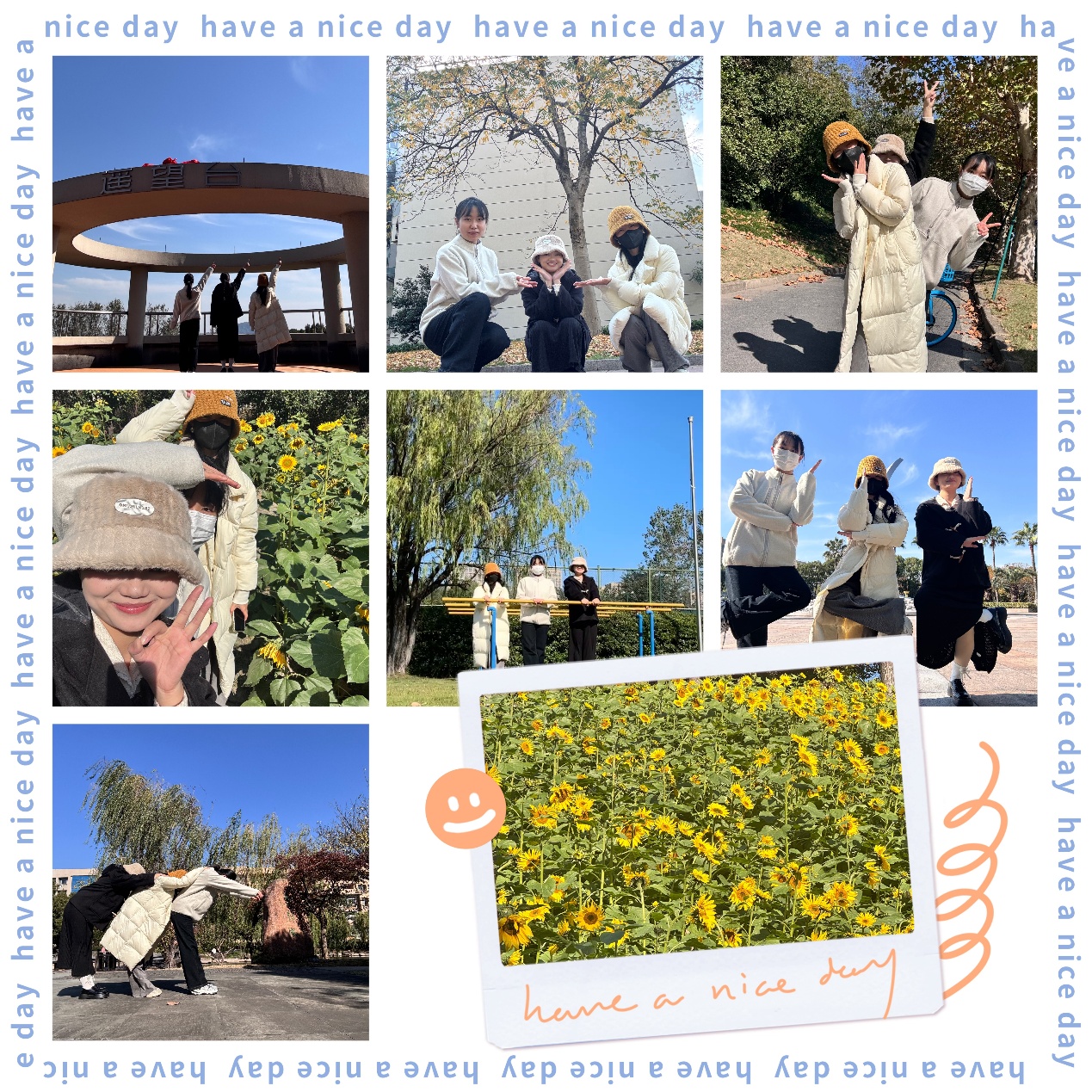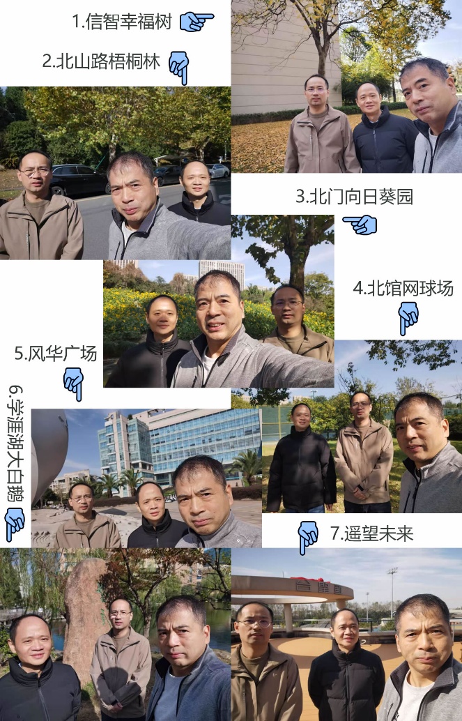 从孕育智慧的学院楼后“网红树” 下出发,感受四季流转的生命力;漫步至校园北路梧桐林,在落叶纷飞中体会岁月的沉淀与坚守;行至北门向日葵园,正如教师们始终心向阳光、立德树人的初心;途经北馆网球场,展现教师们课堂之外的活力与风采;抵达图书馆前风华广场,回望教书育人、作育英才的使命与荣光;踱步学涯湖畔,与悠然的大白鹅一同享受片刻的宁静与闲适;最终登临学院四楼“遥望台”,极目远眺,共同畅想学院与学校未来发展的宏伟蓝图。