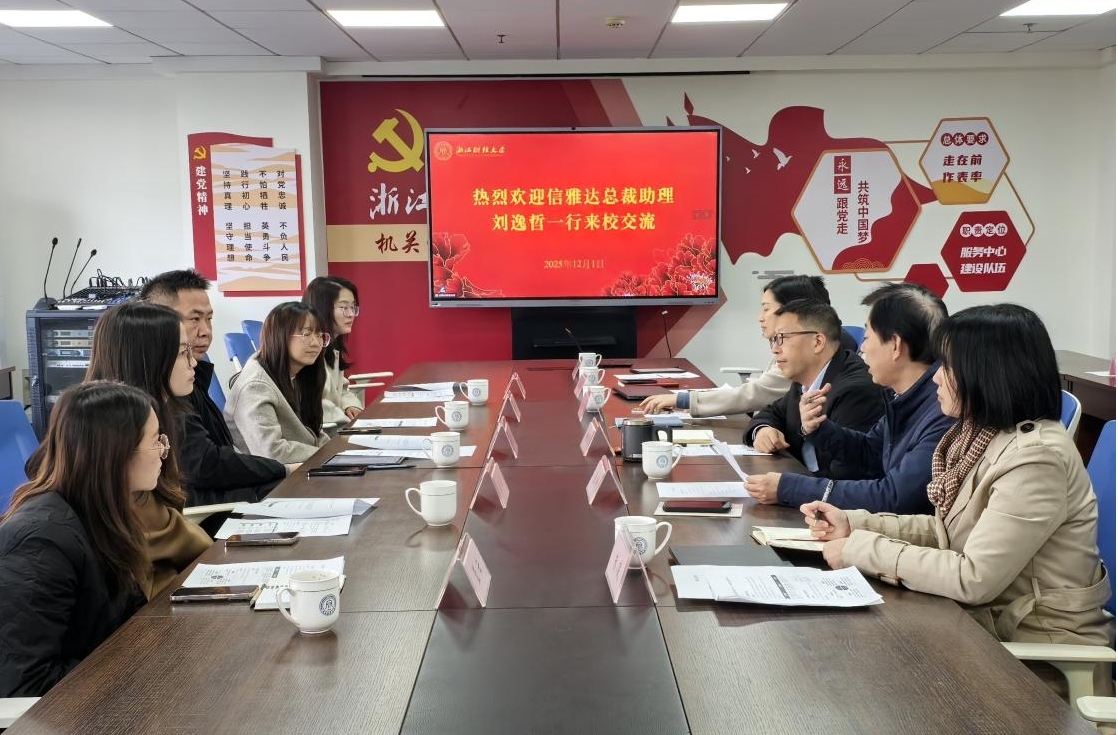 12月1日下午,信雅达科技股份有限公司总裁助理刘逸哲、人力资源中心副总经理徐倩、人力资源中心HRBP经理金晶、人力资源中心组织发展中心经理蓝云、企业技术中心博士后工作站主任施玉晨等一行前来学校,就“AI菁英”联合培养方案开展深度交流座谈。浙江财经大学社会合作处处长杨剑勇、雷速体育下载 院长张帅,教务处副处长张少华、教务处副处长李毅、雷速体育下载 教学院长朱凌、社会合作处科长刘昊等出席会议,双方围绕人才培养、产学研融合等核心议题展开热烈研讨,凝聚合作共识。