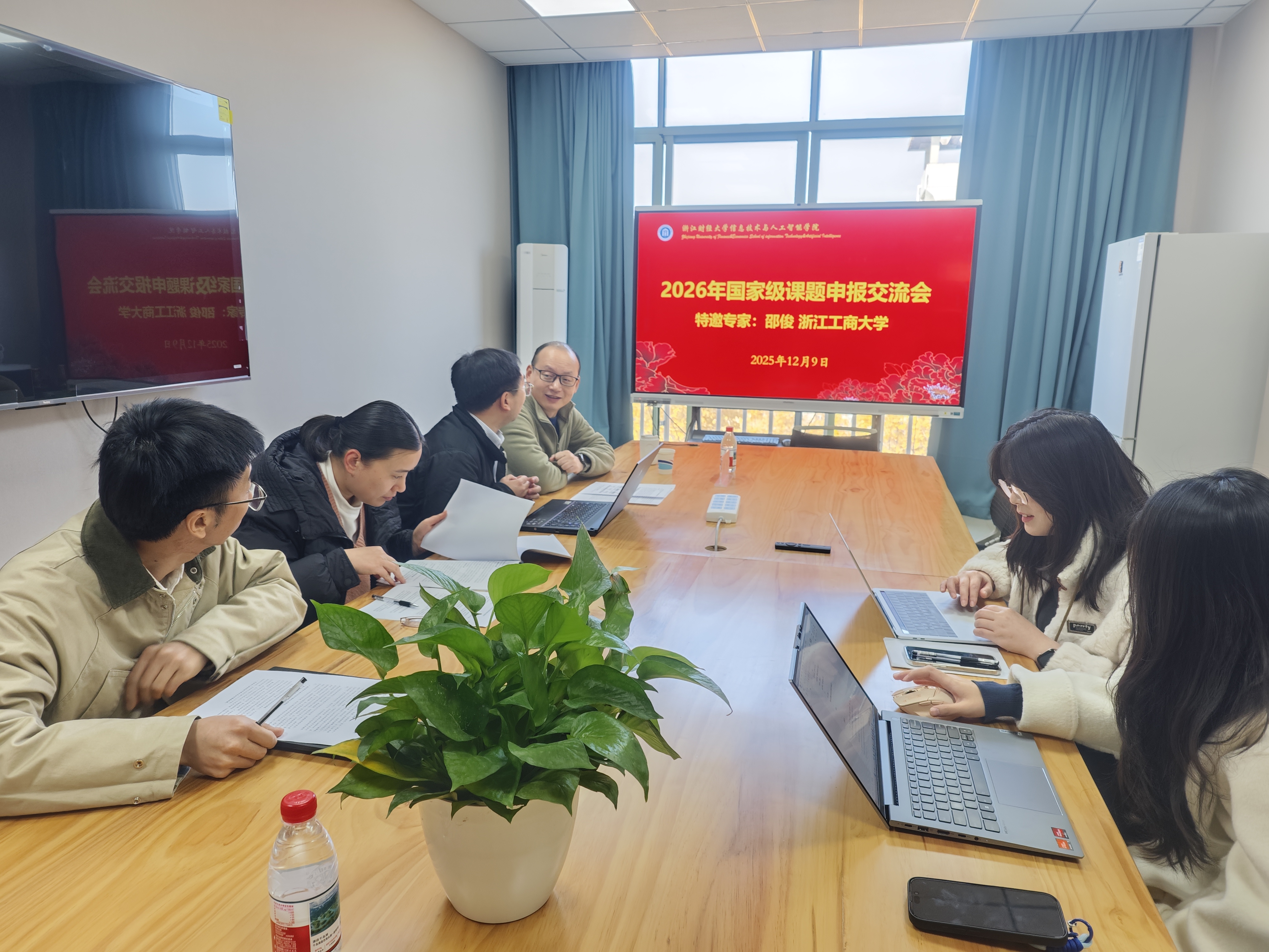 2025年12月9日,我院在508会议室组织2026年度国家级课题申报交流会。本次交流会特邀浙江工商大学邵教授莅临现场,为我院课题申报老师提供专业指导与经验分享,助力提升我院国家级课题申报质量。