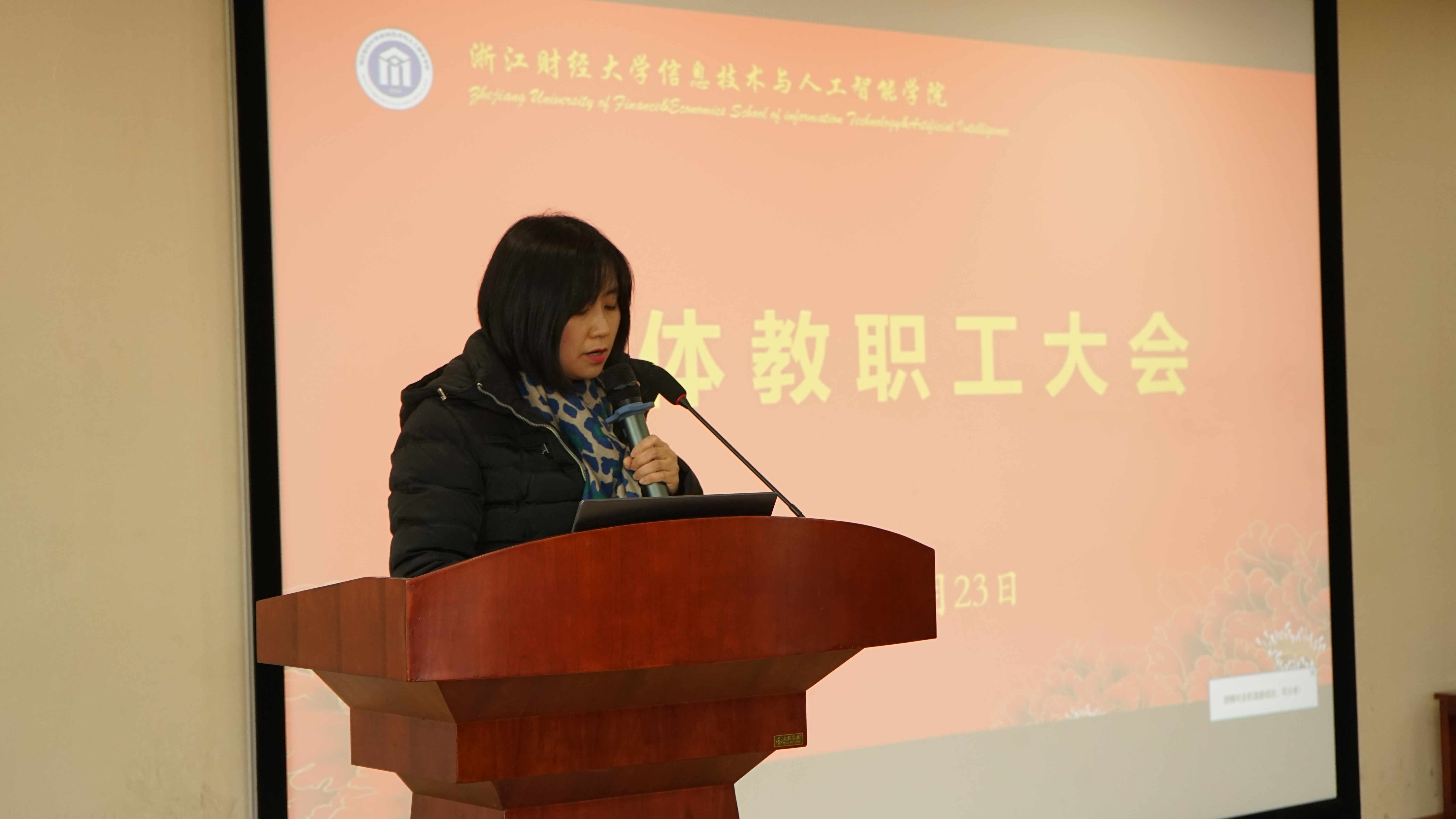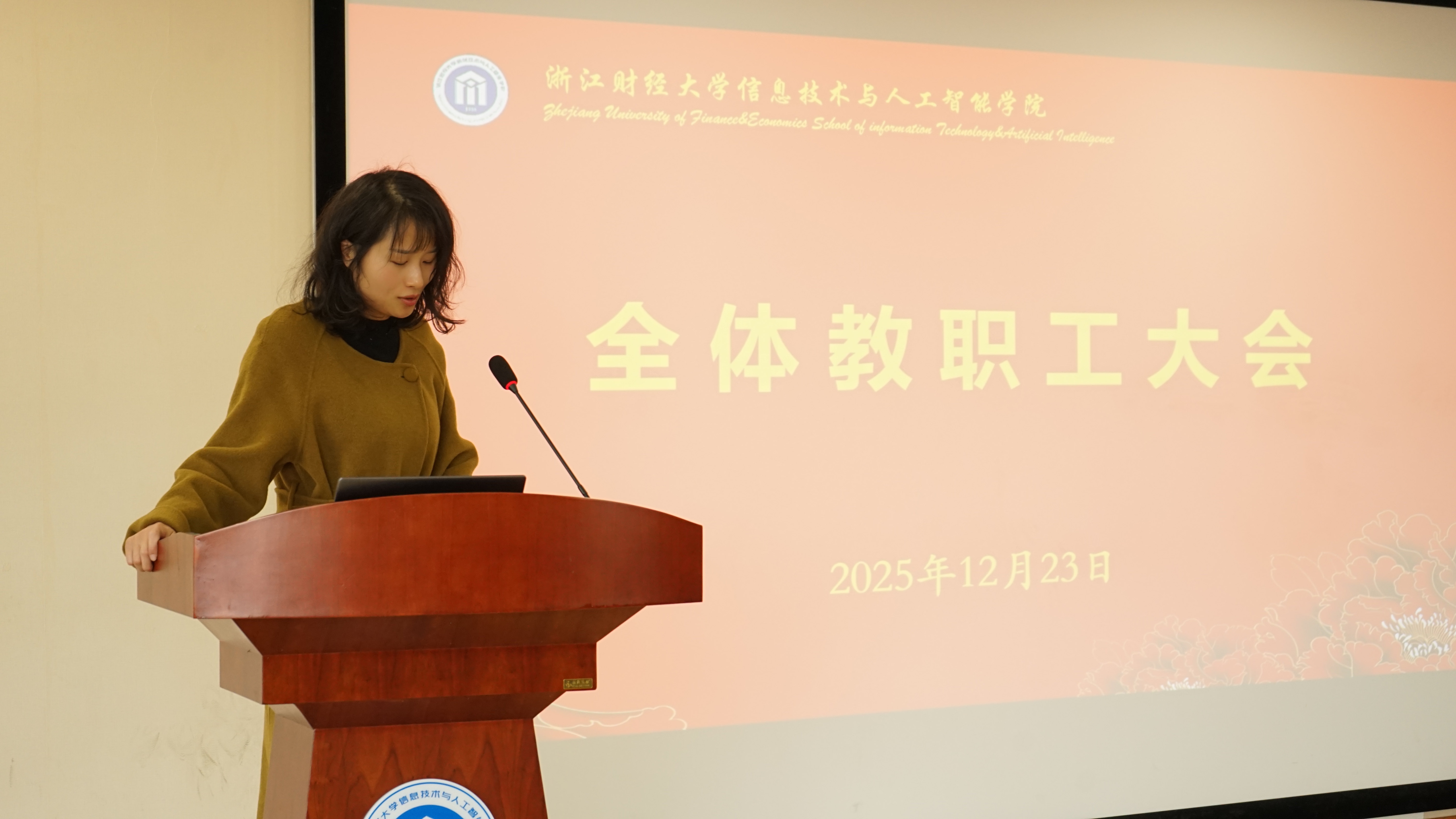 12月23日下午,信智学院期末全体教职工大会在9号楼302报告厅顺利召开。会议深入传达学习学校近期工作精神,全面总结学院2025年度各项工作成效,并对期末重点任务进行部署。学院领导班子成员及全体教职工参会,会议由学院党委书记吴翼泽主持。
