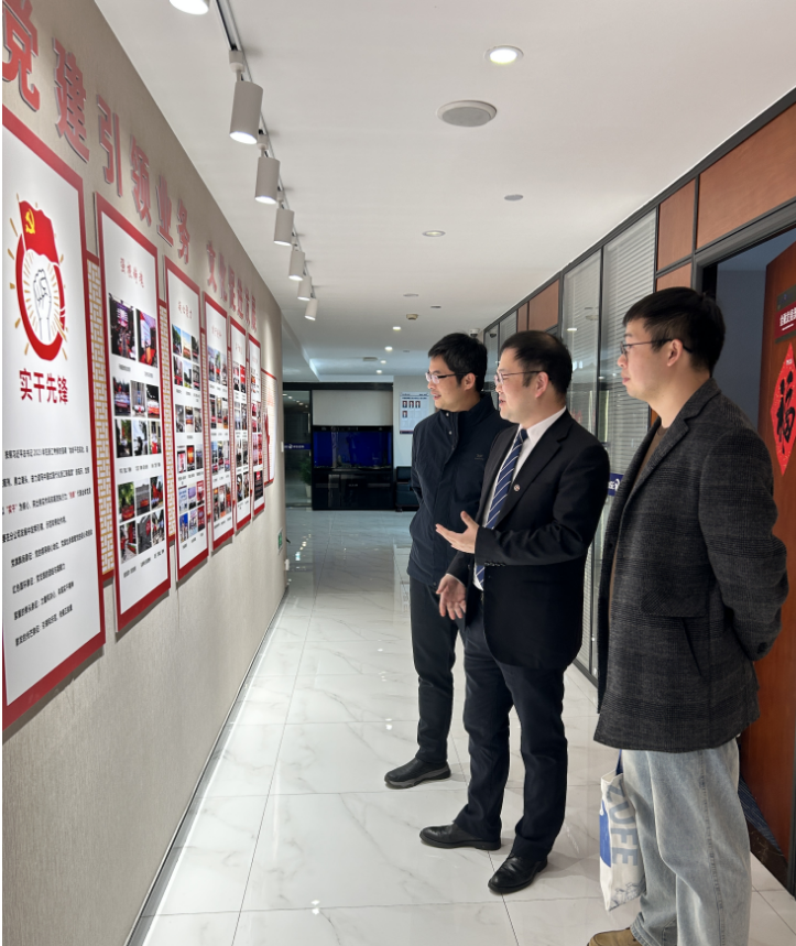 随后,双方围绕校企协同育人模式创新、财经类人才培养、就业实习等展开深入研讨。学院一行在张磊校友及其他在岗校友的陪同下,参观了公司成果展示和党建工作,实地了解行业运营模式,直观感受行业发展前沿动态。