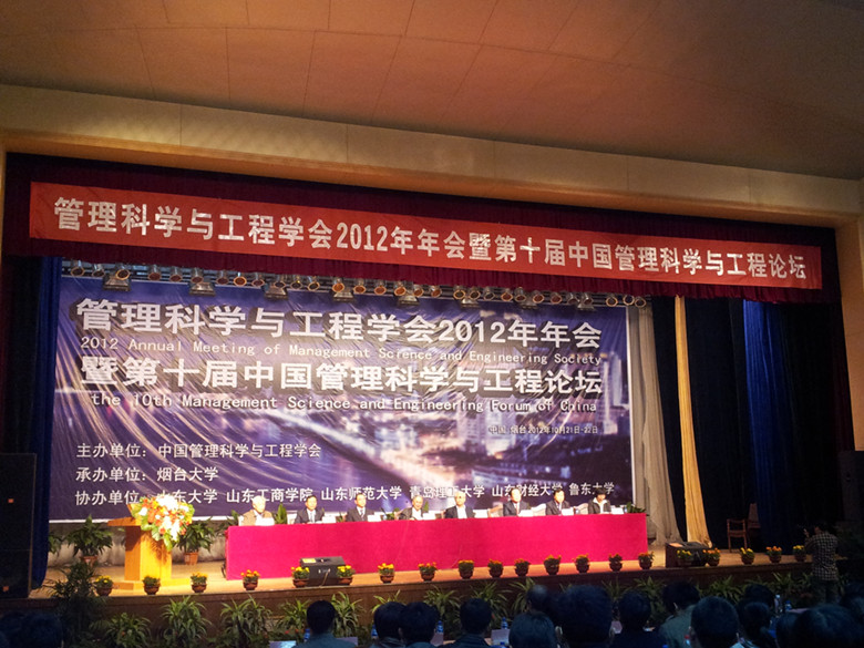 管理科学与工程学会2012年年会暨第十届中国管理科学与工程论坛于2012年10月21-22日在烟台大学举行。中国工程院院士、中国管理科学与工程学会理事长、我校名誉校长李京文,中国工程院院士、国家自然科学基金委管理科学部主任郭重庆以及国内150所高校、科研院所的专家、学者、博士生、硕士生等500余人参加。雷速体育app
